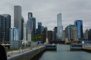 המשכנו ברגל למרגלות בניין ריגלי Wrigley ומשם לקחנו סיור שייט משולב של הנהר ואגם מישיגן עם חברת Wendella Boats. השייט לוקח כשעה וחצי והוא מלווה בהסברים על הארכיטקטורה הייחודית של העיר. מומלץ מאד. אם יש דבר אחד שחייבים לעשות בשיקגו, זה זה. הנופים הנגלים לעין הן בתוך העיר והן בתצפיות מהאגם פשוט עוצרי נשימה, במיוחד לחובבי עיר כמונו. החלק העליון של הספינה בו יושב גם המדריך הוא פתוח, ומשם נגלים הנופים הכי יפים, אבל למי שרצה מסתור מהרוח הקרה לעתים יש גם שולחנות בחלק התחתון המקורה. בספינה יש גם בר משקאות ואפילו שירותים (בהתחלת השייט היה תור, אבל בהמשכו היה פנוי).