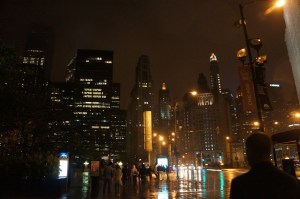 בשדה התעופה של שיקגו הלכנו לפי השילוט לתחנת הרכבת Trains to the City, קנינו במערכת האוטומטית כרטיס יומי לכל אחד (10$), ועלינו על הקו הכחול לעיר. כבר בדרך הבנו שגשום. החלפת רכבת, עוד שתי תחנות, הליכה רגלית קצרה ואנחנו במלון Hyatt Magnificent Mile.