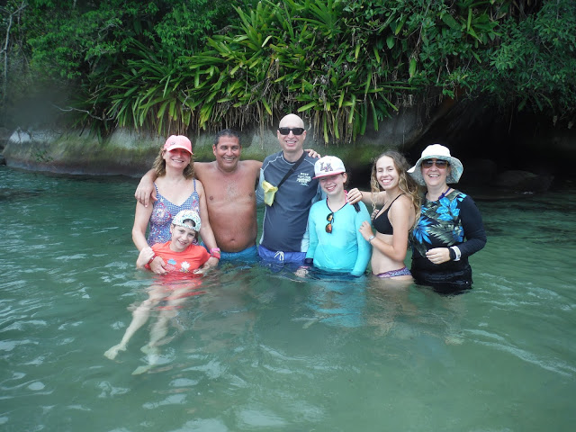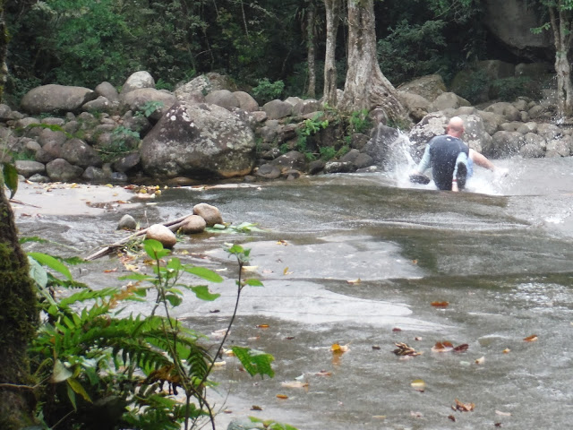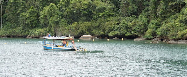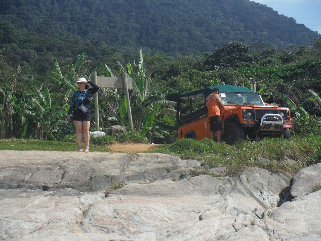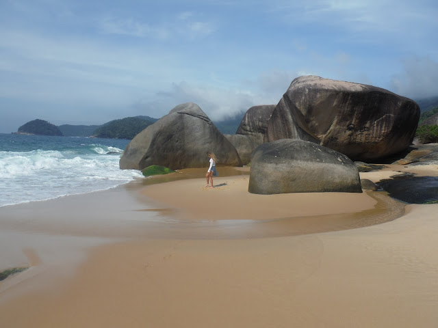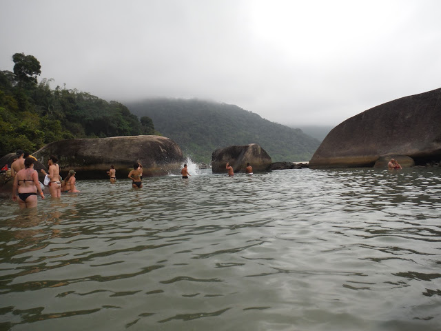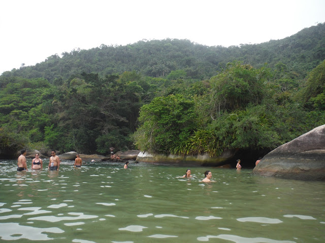 רוברט אסף אותנו בתשע בבוקר מהמלון, והתחלנו בנסיעה לכיוון חוף טרינידד Praia Trindade Paraty. עצירה בחוף אחד רק לתמונות, והמשכנו לחוף האמצעי "פראיה מאיו" שם הוא החנה את הג'יפ והמשכנו לבד. אחרי מסלול הליכה של כ-40 דקות בג'ונגל לאורך החוף הגענו למקום פשוט קסום – סלעים ענקיים יצרו בריכה במים – המים שקטים שקטים וצלולים כל כך שאפשר לראות את הדגים שוחים ליד הרגליים. מהמם ברמות. ההליכה בג'ונגל כוללת טיפוס וירידה ולא קלילה, אבל אפשרית. את ההליכה בג'ונגל אפשר לעשות בכפכפים, יחפים או בסנדלי שורש למי שיש. אני הלכתי יחפה (כי הייתי עם כפכפים, והרגיש לי יותר בטוח יחפה). המסלול מאד מטוייל וברור, אי אפשר ללכת לאיבוד.