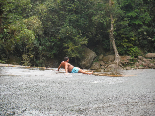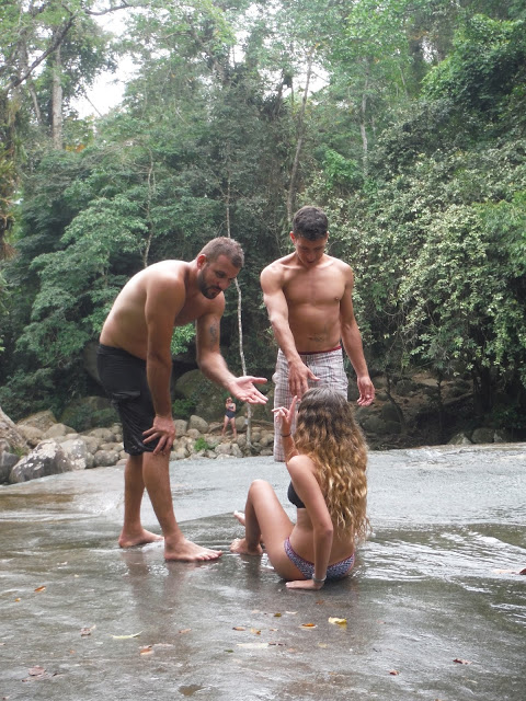 חזרנו לכיוון פראצ'י והמשכנו בג'יפ לתוך הג'ונגל, עד למסעדת טרזן Cachoeira do Toboga e Poço do Tarzan, שם הזמנו את ארוחת הצהרים והלכנו ברגל הליכה קצרה למגלשות הטבעיות במפל הקרוב. ואיזו חוויה! המפל לא ענקי, אבל יש בו כיף מיוחד. סלעים ענקיים שהפכו חלקים עם הזמן משמשים כמגלשה טבעית ענקית. כל האמיצים (שזה כולם למעט גיסתי ואני) התגלשו מספר פעמים בכיף גדול. מאחורי המפל יש מערה קטנה, והמים מתוקים, נקיים ומרעננים. קסם של מקום.