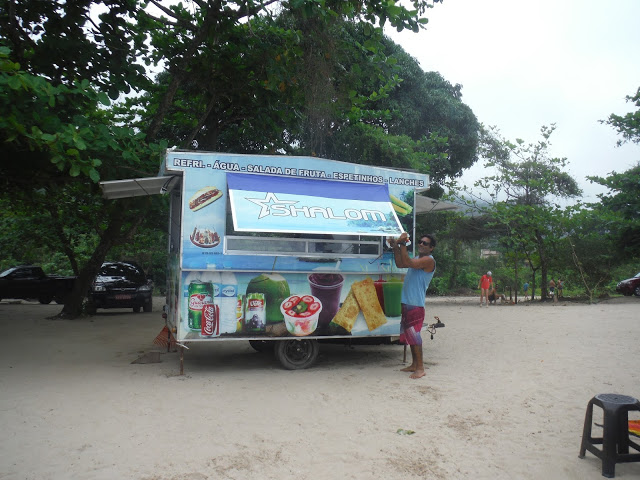 נשארנו קצת בחוף לארוחה קלה של פסטל (מאפה מטוגן) ומי קוקוס בדוכן שהשלט עליו אומר… Shalom. בעל הדוכן (שמדבר אנגלית!) בחור בשם לואיז, ברזילאי ממוצא לבנוני, גולש שחי הרבה שנים בהוואי. מקסים וטעים ממש.