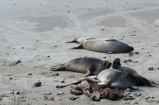 ביום חצי חורפי יצאנו לראות את פילי הים בפארק אניו נואבו Ano Nuevo. אין כמו לראות בעלי חיים בסביבתם הטבעית, ככה נטורל, והצלת פילי הים בקליפורניה סיפור הצלחה של ממש. ציד מסיבי דילל את האוכלוסיה עד שבתחילת המאה הקודמת נשארו כמה עשרות פריטים בעולם, ורק התערבות ממשלתית ואכיפה תקיפה (כולל הצבת חיילים באיזור הנחיתה של פילי הים להגן עליהם מציידים) הצילה אותם. לפי הריינג'רית שליוותה אותנו, היום מעריכים שיש כ-300,000 פריטים. והם מקסימים ממש! אם אתם באיזור, בואו לראות אותם.