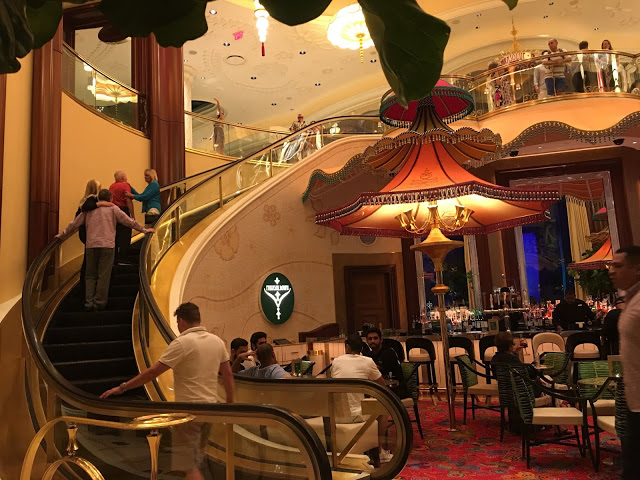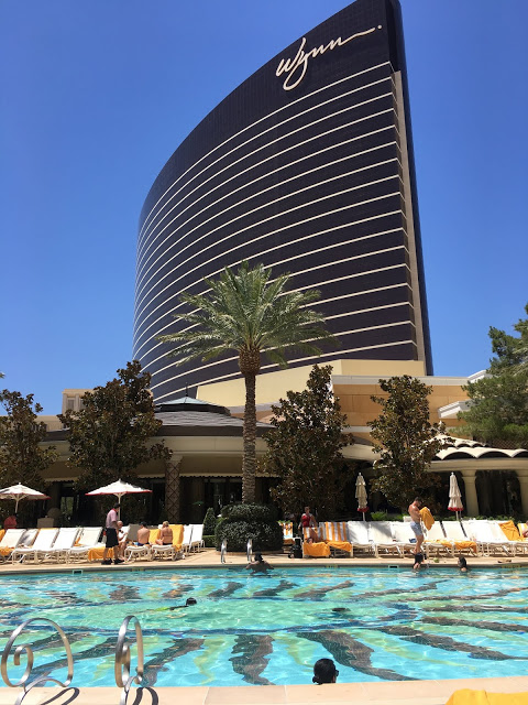 נתחיל מהמלון. וואו. נעם הצליח לתפוס דיל נחמד במלון אנקור Encore. מחיר טוב, בופה בוקר/צהרים כלול כל יום, ועוד 100$ לבזבוזים במסעדות המלון. המלון פשוט מעולה. חדש, מודרני, מעוצב נפלא. הוא אחיו הקטן של מלון ווין Wynn, אין בו איזה אטרקציה תיירותית, והוא די אחרון בקטע הזה של הסטריפ, לכן לא מגיעים אליו המוני תיירים מזדמנים והקזינו יחסית פחות עמוס. מה שכן יש בו, זה מסיבת בריכה נחשבת במועדון Beach Club ולכן בימים ושעות מסויימים הוא מלא אנשים צעירים ויפים בלבוש מינימלי. החדר היה סוויטה קטנה עם סלון קטן, חדר אמבטיה ענקי ומפנק, ו"בית חכם" עם שליטה אלקטרונית בתאורה, וילונות ועוד. במלון יש ספא (יפה אבל יקר), בריכות (אחת משפחתית ואחת מעל גיל 21 עם בר ושולחנות קזינו במרכזה), מסעדות וחנות. וקזינו לא גדול מאד. יש חניה בתשלום, אבל אנחנו היינו בלי רכב והשתמשנו בעיקר בשירות הסעות ליפט Lyft.