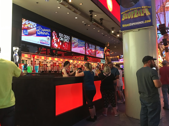 האמת? הופתעתי לטובה. לקחנו ליפט לאיזור הדאונטאן שהיה זכור לי כדי ג'יפה מלפני המון שנים. אבל האיזור כולו משופץ, מואר, ומלא כיף. היו מספר להקות לא רעות בכלל שהופיעו על הבמות, רחוקות מספיק אחת מהשניה כך שהמוסיקה לא מתערבבת, כל מיני דמויות משעשעות שמצפות לתשלום עבור צילום משותף, ברד אלכוהולי בכוסות ארוכות (כמו שהכרנו מניו אורלינס) ובשעה עגולה (9 נדמה לי) מיצג מולטימדיה על התקרה. יש גם אומגה שנראית נחמדה – לעוף מעל ראשי האנשים. חלק מהחוויות פחות הולמות לילדים צעירים (בחורות בלבוש מינימלי רוקדות על הבר, נשים כמעט ערומות שאפשר להצטלם איתן, גברים כמעט ערומים שאפשר להצטלם איתם וכדומה) אבל הם לא המונים ואפשר לעקוף או להתעלם. הבאסה העיקרית, חם לאללה, וזה בחוץ.