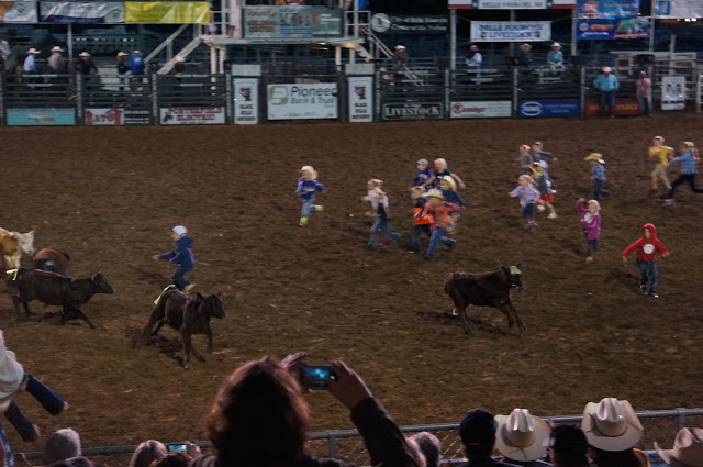 לתחרות רודיאו מגניבה Black Hills Roundup. הרודיאו מתקיים פעם בשנה, וחוגג השנה את שנתו ה-99. מדובר באירוע מאד מקומי, ולא תיירותי. המוני אנשים בג'ינס, מגפי בוקרים וכובעים, דוכני אוכל מהסוג הגרוע והטעים ביותר – נקניקיות, לחמניות עם pulled pork, נא'צוס, דונאטס, פופקורן ושערות סבתא, נערות חינניות רוכבות עם דגלים של הספונסרים של התחרות, בוקרים אמיצים מתחרים ברכיבה על סוס משתולל, לכידת עגל בלאסו ורכיבה על שור, בוקרות זריזות מתחרות ברכיבה מהירה תוך כדי הקפת חביות, ועל כל זה מנצח שדר חביב בשיתוף פעולה עם ליצן הרודיאו (סוג של סטנדאפיסט תכלס). מזל שבמוזיאון 76 היה סרטון שהסביר את החוקים אז ידענו בדיוק מה קורה. בשלב כלשהו ביקשו מכל הילדים בגילאי 6-12 לרדת למגרש לתחרות נושאת פרסים ואז… שחררו לקהל הילדים מספר עגלים צעירים עם סרט מודבק לזנב שהילדים היו צריכים לתפוס. איפה עוד אפשר לראות ילדים אמריקאים רצים בבוץ בין עגלים? חוויה מיוחדת וכיפית לאללה. לא השתעממנו לשניה.