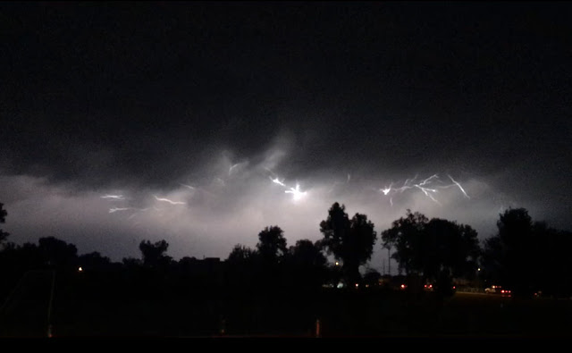 תוך כדי הרודיאו התחילה סופה וחלק מהזמן ירד גשם שוטף. מדהים איך בוקר שמשי מסתיים בסופה שכזו, ולמחרת שוב שמש. הסופה באה והולכת במהירות. מסתבר שזו תופעת טבע ידועה באיזורי הערבה השטוחים. בגלל הגשם השוטף לא נשארנו לצפות בזיקוקים וחזרנו לרפיד סיטי בחושך תוך כדי סופת ברקים מדהימה ומפחידה קצת. ברקים בלי הפסקה שמאירים את השמים.