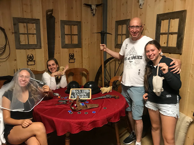 בערב הלכנו לחדר בריחה שהוזמן מראש Ghosts of the Black Hills – החדר, עם סיפור מסגרת של רוחות רפאים מהאיזור, היה מעוצב נהדר וממש נהנינו… עד שמנעול אחד לא עבד (גילינו את הקוד והמנעול פשוט לא נפתח). בזבזנו על זה המון זמן ועצבים והכיף הפך לתסכול. גם לא אהבתי את העובדה שכשרוצים רמז, המפעיל נכנס לחדר. אז רגשות מעורבים.