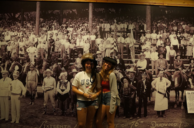 משם נסענו מרחק קצרצר לדדוד המקסימה. בהחלט עיירת המערב הפרוע החמודה ביותר שפגשנו. ביקרנו במוזיאון 76 ההיסטורי, המתאר את תולדות העיירה והמצעד המפורסם שלה, והמון תצלומים, תיעוד וחפצים מהתקופה. מאד מפתיע כמה צילומים יש מימי המערב הפרוע, התיעוד מאד מעניין. יש במקום גם תצוגת כרכרות מרשימה ביותר. חפשו נקודות עם ציור של מצלמה על הרצפה, בהן אפשר להתחפש ולהצטלם. למרות שהן כבר מתבגרות גדולות וציניות, הבנות עשו צחוקים והצטלמו בכל נקודה. ראינו גם סרט שמסביר את חוקי הרודיאו, חשוב מאד להמשך!