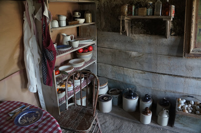 חזרנו לכביש 240 וחזרנו לשטח הפארק. המשכנו עם עוד עצירה או שתיים (בשלב כלשהו זה מתחיל לחזור על עצמו). נכנסנו לראות בית קטן בערבה, Prairie Homestead אמיתי לגמרי שנשמר ושומר מימי המתיישבים. באותה תקופה היו חוקים שאיפשרו לאנשים לקבל בחינם מהמדינה שטח אדמה אם יעבדו אותו למשך תקופה. החוות האלו נקראו homestead והבתים באיזור הזה נבנו מבוץ ואדמה. איה ואני התלבשנו בבגדי התקופה, סיירנו בחווה והצטלמנו.