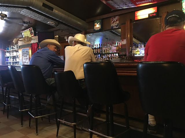לארוחת צהרים פנינו ימינה ויצאנו מהפארק לכיוון העיירה קטנה אינטריור Interior, לאכול ב Wagon Wheel Bar – בר עם משחקים, מכונות מזל, אלכוהול בשפע ותפריט פשוט אבל טעים. וזול. אין במקום ולו ירק אחד לרפואה, וכשביקשתי שלא ישימו לילדה חסה או בצל בהמבורגר אבל עגבניה כן (הנוהל ההרגיל שלה), המלצרית צחקה ואמרה – זה בסדר, אין לנו ירקות, רק מלפפונים חמוצים.