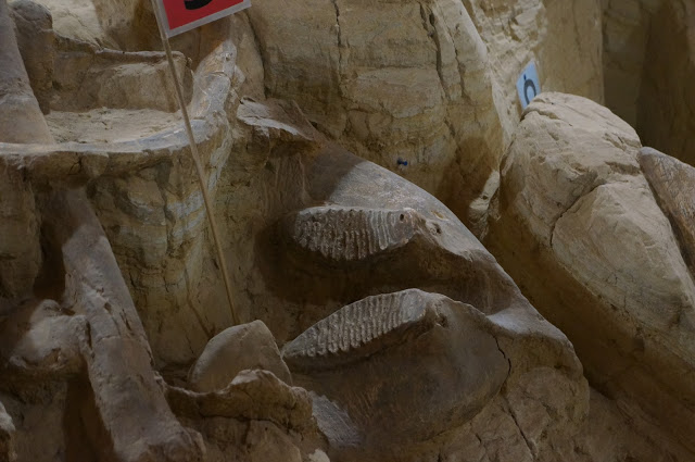 | אלו אגב לא טביעות נעלי ספורט של ארכיאולוג לא אחראי, אלא שיניים טוחנות של ממותה. |