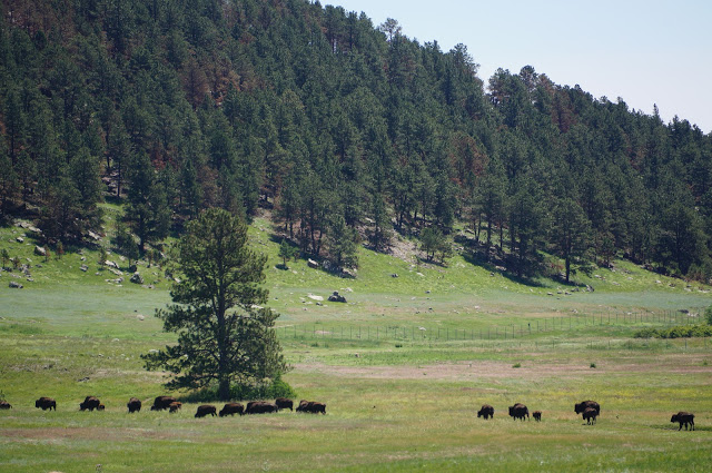 חזרנו לאסוף את המאושרים (ברזיל ניצחה) ונסענו לפארק קאסטר לנסוע ב Wildlife Loop ולחפש בעלי חיים. גוגל הנווט הביא אותנו לפארק בדרך צדדית שלא דרך הכניסה הראשית אז עצרנו במרכז המבקרים כדי לשלם ולקבל מפה והסברים. הריינג׳רים סיפר לנו איפה ראו בופאלו באותו בוקר ולשם נסענו.