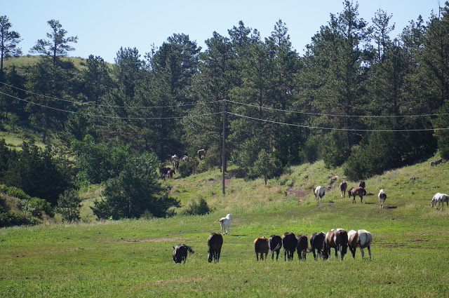 הימים ימי המונדיאל, ובבוקר היה משחק ברזיל מקסיקו אז התפצלנו – חצי מאיתנו נשארו במלון לצפות והחצי היפה והחכם נסע כחצי שעה (חלק מהדרך שביל עפר) לחווה שמאפשרת צפייה בסוסי מוסטאנג בטבע Black Hills Wild Horse Sanctuary. יש סיורים מודרכים שלוקחים מינימום שעתיים. כיוון שלא היה לנו את הזמן הזה, רק עשינו סיבוב לראות קצת סוסים. ראינו את הסוסים המבויתים וגם את המוסטנגים המהממים. ראינו אותם גם יוצאים מאיזור החווה לעבר הגבעות, ולראות סוס מוסטאנג דוהר בטבע זה מאד מרשים. קצת הצטערתי שלא עשינו סיור, כי הסוסים מקסימים ממש.