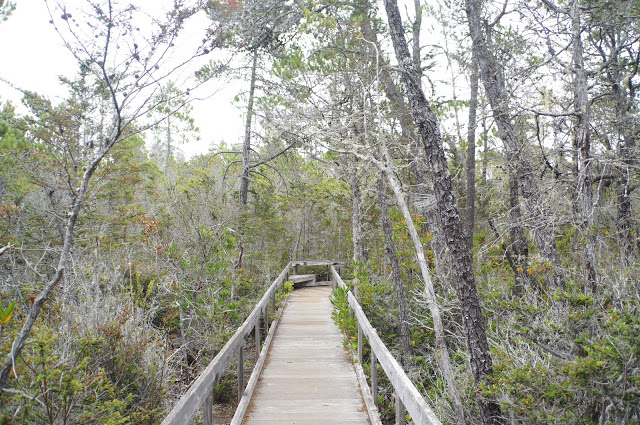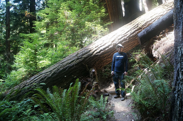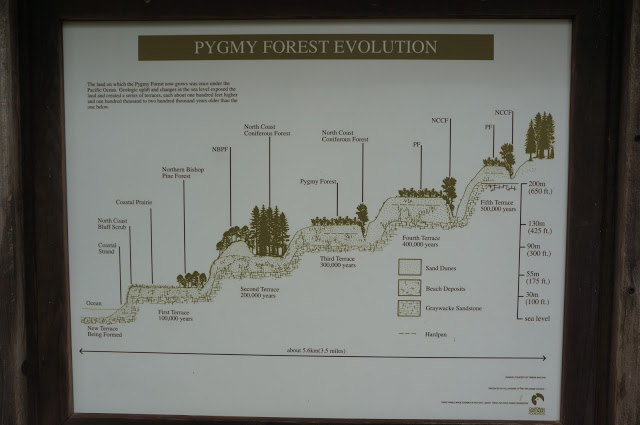 אחרי כשעתיים על הנהר החזרנו את הסירה ונסענו לפארק המדינה ואן דאם Van Damme State Park. בגלל שיש לנו עוד נסיעה ארוכה הביתה, החלטנו לעשות רק מסלול אחד קצרצר – היער הגמדי. שילמנו את דמי הכניסה לפארק, נסענו עד החניה ואז הסתכלנו במפה שמקבלים בכניסה והסתבר לנו שבשביל היער הגמדי בכלל לא נכנסים לפארק אלא צריך להמשיך על כביש 1 עוד קצת, לפנות לכיוון שדה התעופה ואז ישר עד החניה של היער הגמדי (ללא תשלום). עשינו אחורה פנה, מוותרים על 8$ לטובת מדינת קליפורניה ונסענו למקום הנכון. מסלול היער הגמדי Pygmy Forest – מסלול קצר מאד על טיילת נגישה עם שלטי הסבר. מדובר בעצים עתיקים מאד, בני עשרות או מאות שנים שלא מצליחים לצמוח לגבוה בניגוד לשאר היערות באיזור. האדמה מאד חומצית ונטולת ערכים תזונתיים אז העצים לא גדלים. קצת קריפי, אבל מעניין. כמובן שמי שיש לו זמן יכול להגיע ליער הגמדי דרך מסלול הליכה ארוך בפארק הראשי.