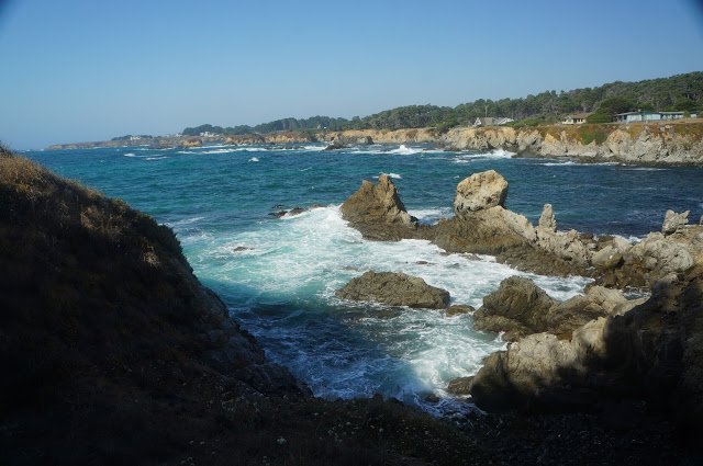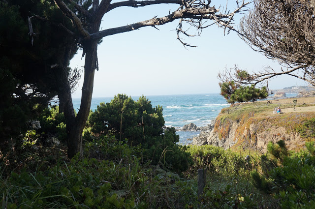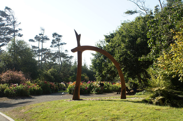 לעצירה ראשונה וטעימה של האיזור נכנסנו לגנים הבוטאנים של מנדוסינו Mendocino Coast Botanical Garden (בכניסה לפורט בראג). יופי של מקום! יש גינות מטופחות, מסלול הליכה לאורך המצוק (מפגש ראשון עם הים), בית קברות פיצפון של המתיישבים הראשונים במקום, גינת ירק וגן מרהיב של פרחי דליה שבדיוק היו בפריחה מלאה. יש במקום גם משתלה. נחמד מאד.