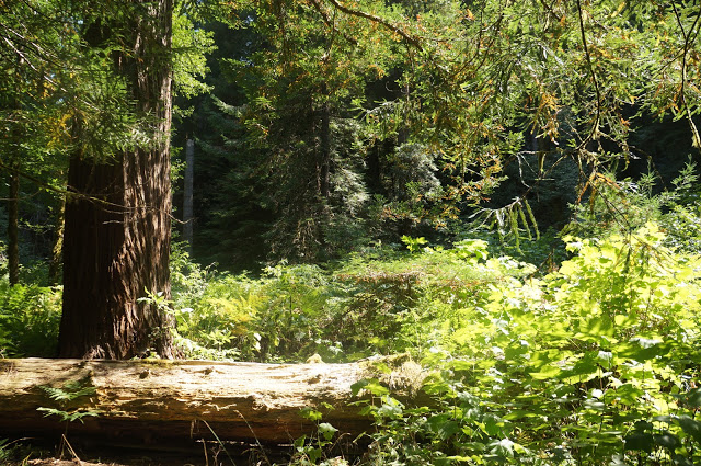 המסלול השני אותו רצינו לעשות הוא מסלול ארוך יותר שמגיע למפל. ירדנו למטה ברגל והבנתי שאם אני צריכה לעלות את כל זה חזרה אחרי הליכה במסלול של מעל 10 קילומטר, הלך עלי. אז נעם הגיבור עלה חזרה להביא את האוטו, כי בינתיים התפנו מקומות חניה למטה. הלכנו במסלול השרכים Fern Canyon Trail ואז מסלול מעגלי למפל Waterfall Loop Trail. הראשון כ-2 מייל כל כיוון, מסלול שטוח, קליל, סלול ומונגש יחסית. המון צמחיה, שרכים, עצים, פטל שחור שאפשר לקטוף ולטעום. מסלול קל שמתאים למשפחות בכל הגילאים, ואפילו ראינו משפחות עם עגלות ילדים.