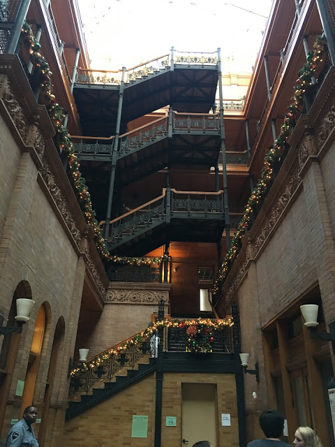 המשכנו עם הרכב לדאון טאון לוס אנג'לס, שעוברת התחדשות ותקומה. חנינו בפרשינג סקוור Pershing Square המקושטת עם זירת החלקה על הקרח וטיפסנו רגלית לכיוון מוזיאון הברוד The Broad. מטעמי זמן לא ביקרנו במוזיאון, אבל הוא נכנס לרשימה העתידית שלי.