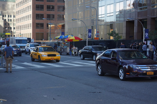 המשכנו במעלה הרחוב ופתאום ראינו המון משאיות, דוכני אוכל, אנשים, מצלמות… נפלנו על ראינו סט צילומים אמיתי של סרט אמיתי. כמובן שנעצרנו לבהות בפעלתנות על הסט. עשרות מכוניות (עם לוחיות זיהוי ניו יורקיות), ניצבים בחליפות עסקים, דוכני נקניקיות ניו יורקים ומוניות צהובות. עשרות, אם לא מאות אנשים שעובדים מסביב בשביל לצלם סצנה של חצי דקה. ואז להחזיר הכל למקום, ולצלם שוב. ושוב. רכשתי הערכה רבה לעוסקים במלאכת הקולנוע. היה מעניין ממש.