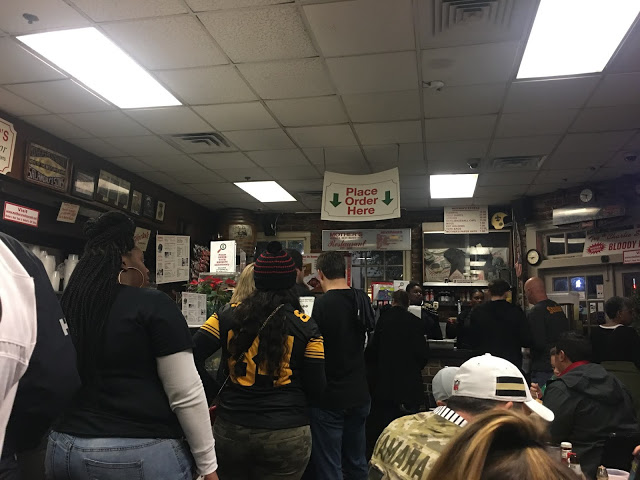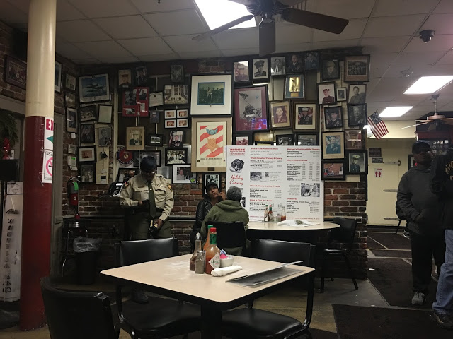 לארוחת ערב בדקנו את הספורט בר Manning's ברחוב פולטון Fulton המקושט (וגם הפריחו בו שלג מלאכותי לצלילי שירי חג מולד), אבל היתה המתנה של 40 דקות לשולחן, אז הלכנו לאכול אצל אמא Mother's Restaurant. מסעדת אמא קיימת כבר מעל 80 שנה ומגישה אוכל נשמה ניו אורלינסי, במנות ענק. מחכים בתור להכנס, מזמינים בקופה ויושבים לחכות. תענוג של אוכל.