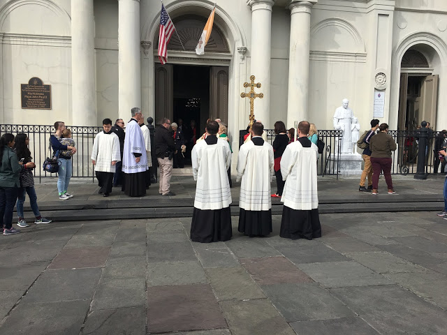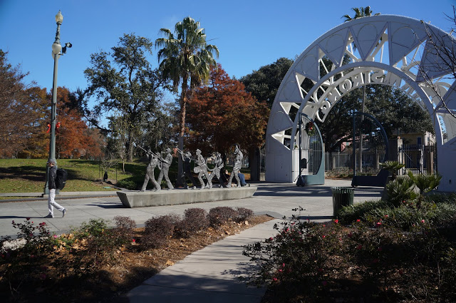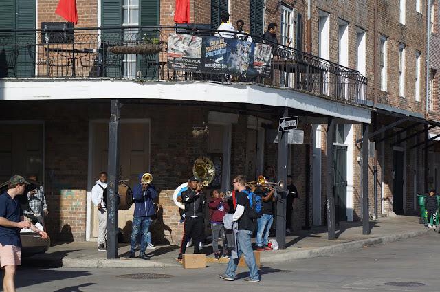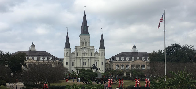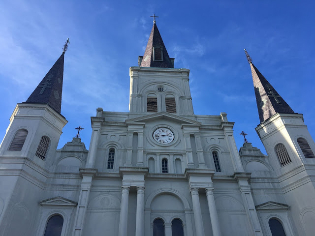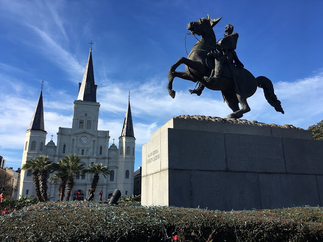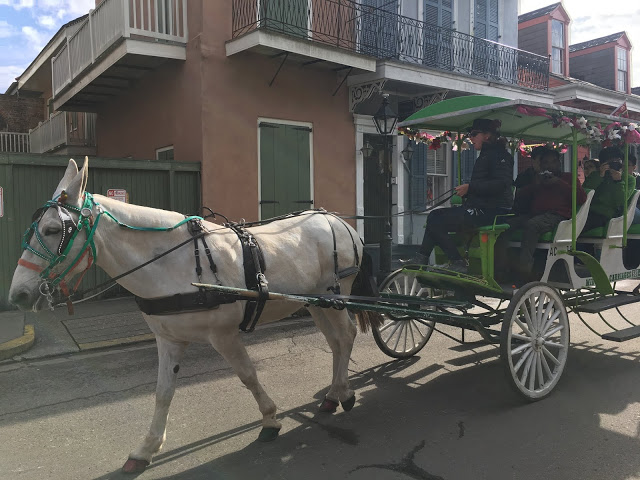 כדי לנסות להציל את המצב ישבנו לאכול ארוחת בוקר מושקעת במסעדה Cafe Maspero ברובע הצרפתי ואז נפגשנו עם חברים אהובים מסאניוויל בכיכר ג'קסון ועשינו את הסיור העצמי של האפליקציה. הסיור לא רע בכלל ועובר בלא מעט מקומות מעניינים ברובע. אם היינו ביום בו הכל פתוח, יש מספר מוזיאונים שנראה לי שווה להציץ בהם כמו The Cabildo, 1850 House, Pharmacy Museum וכמובן קתדרלת סיינט לואי St. Louis Cathedral. מה שכן זכינו לשמוע זה מעט מזמרת הכנסיה בקתדרלה (מבחוץ, להכנס אי אפשר היה בזמן המיסה) ולצפות בכמרים שיצאו בסוף התפילה לברך את החוגגים. עברנו גם ליד מוסד המוסיקה המפורסם Preservation Hall וראינו את הבית בו כתב טנסי וויליאמס את "חשמלית ושמה תשוקה". בין לבין ראינו נגני רחוב מוכשרים, כרכרות סוסים ולא מעט תיירים.