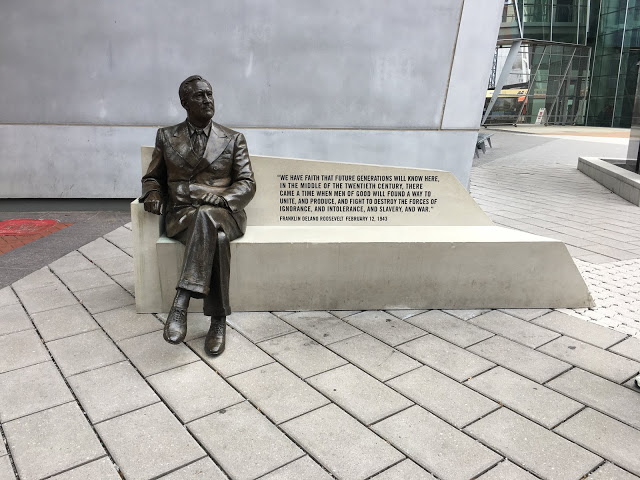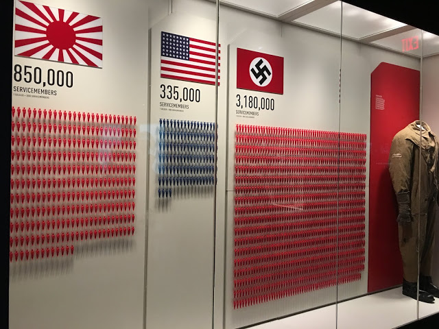 המוזיאון מתמקד (כצפוי) בזוית האמריקאית של מלחמת העולם השניה, ולכן מתחיל בפרל הרבור, מתאר את שתי החזיתות – אירופה ואסיה, ומסתיים אחרי שתי פצצות אטום. זה לא מוזיאון שואה, וזוית השואה מוזכרת רק במעט ובעיקר על חלקם של החיילים האמריקאים בשחרור המחנות. התחלנו בסרט מצויין בשם Beyond all Boundaries בקריינות של טום הנקס (בתשלום נוסף) שמכניס לאווירת המוזיאון, וסיירנו בתערוכות המגוונות על החיים באמריקה בזמן המלחמה, על חיי החיילים ועל שתי החזיתות. הכל מאד חווייתי, מלא סיפורים אישיים, מוצגים מהתקופה, סטטיסטיקות והסברים. המוזיאון פחות יתאים לילדים צעירים או רגישים, אבל בני נוער ילמדו ויחכימו. הבנות שלנו הודו שהיה מעניין.