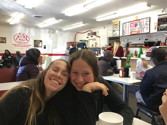 לארוחת צהרים נכנסנו למסעדת המבורגרים נחמדה מאד בשם Huey's. במקום אוכל טעים, הרבה סוגי בירה, ומיליון קיסמים שנעוצים בתקרה אחרי שאנשים נשפו אותם דרך קשיות שתיה. מוזר ומשעשע.
