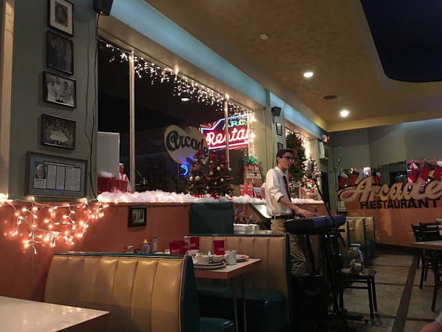לארוחת ערב הלכנו למסעדה בשם ארקייד Arcade Restaurant, שמסתבר שהיא המסעדה הכי ותיקה בממפיס. נהנינו מאוכל דיינר טיפוסי, מוסיקה חיה עם נגן צעיר בעל מראה אשכנזי שהפתיע בבלוז חם ומרשים. הופתענו לגלות שאין מנות אחרונות בתפריט, אבל למרבה המזל, 2 חנויות בהמשך הרחוב יש בית קפה המוקדש לעוגות גבינה בשם Cheesecake Corner. לקחנו עוגות גבינה בטעמים שונים בטייק אאוט להנות עם תה במלון.