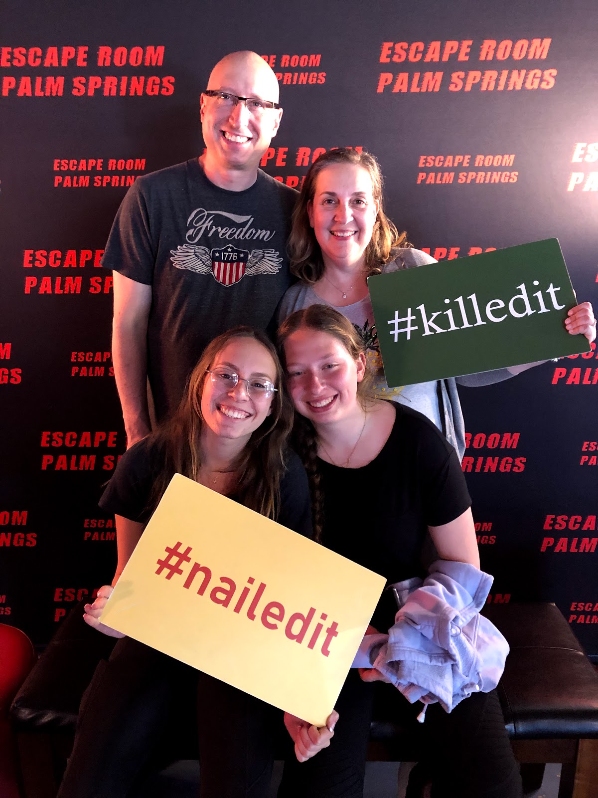 תוך כדי הארוחה במסעדה, הזמנו מקום לאחד הבילויים האהובים עלינו – חדר בריחה. החדר אליו הלכנו הוא Escape Room Palm Springs – Merlin's Magic School, לשמחתנו מדובר היה בחדר מהדור החדש – בלי קודים ומנעולים אלא דברים מכניים ומגנטיים. החסרון היחיד – מדובר בהאנגר מחולק ולא חדרים בנויים אז יש קצת רעש מהחדרים הסמוכים. היה מאתגר ונחמד מאד! עם כמה רמזים הצלחנו לצאת ב-58 דקות.