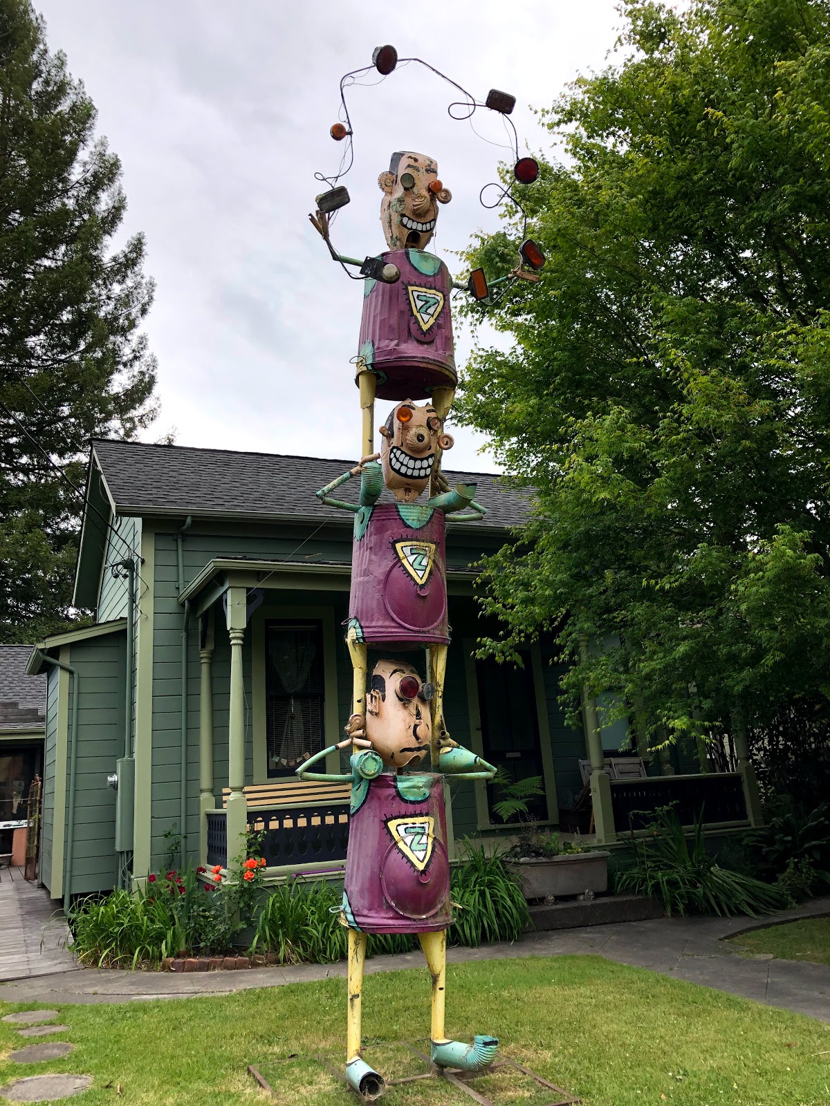 בשלב כלשהו חתכנו מזרחה לעבר העיר הקטנה עם השם הלא מאד אמריקאי – סבסטופול Sebastopol. עשינו עצירה קטנה לגלידה אצל Screamin' Mimi's (יש פה מוטיב חוזר, אני יודעת) וביקור קצר ברחוב מיוחד Florence Avenue Art Walk עם פסלים סביבתיים העשוים מג'אנק על ידי אמן מקומי בשם Patrick Amiot. הפסלים ממוקמים בחצרות הבתים ברחוב, ואפשר לחנות ולהסתובב, זה מתוק ממש ויצירתי לאללה ונחמד לנסות לנחש מהם החלקים מהם מורכבים הפסלים.
