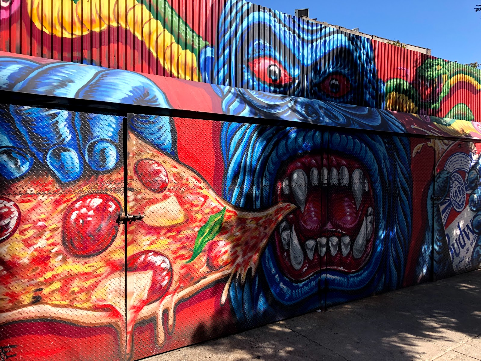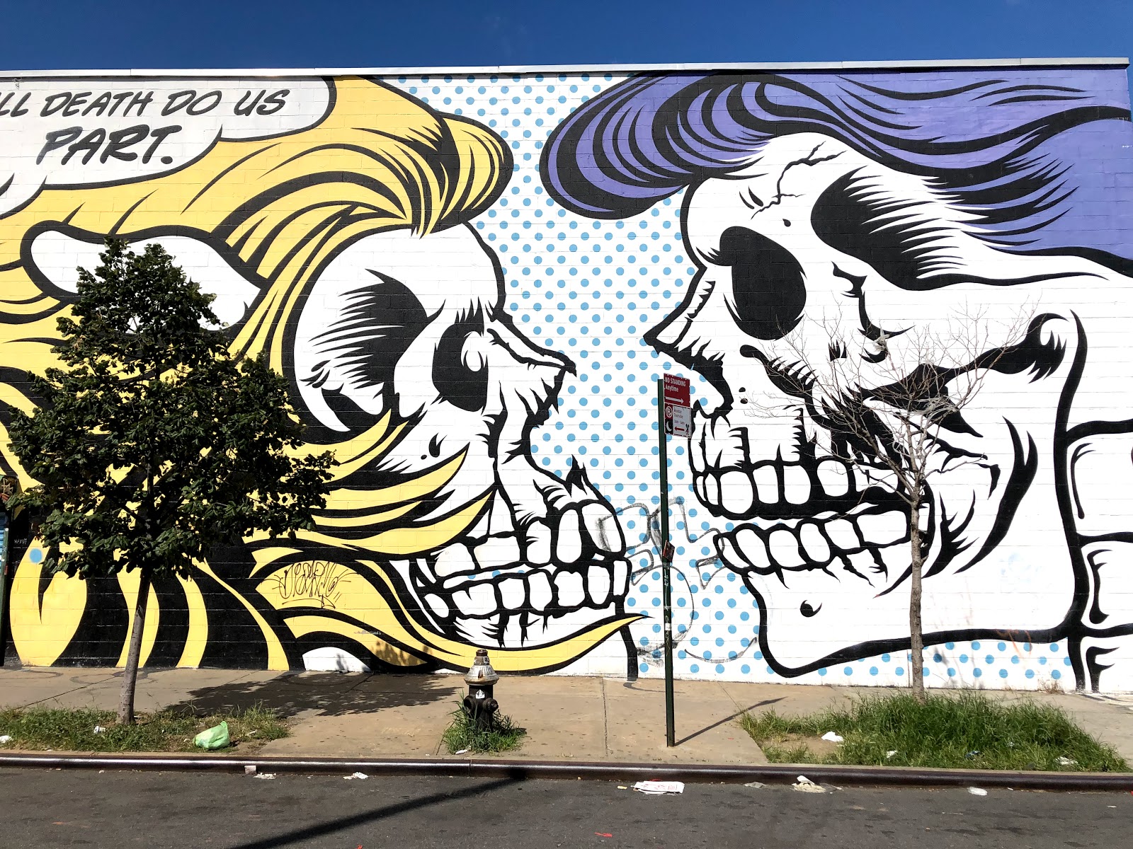 סיור גרפיטי Free Tours by Foot באיזור בושוויק בברוקלין עם המדריך Mar, מומלץ מאד. המדריך היה מרתק ומאד אינפורמטיבי לגבי ההיסטוריה, ההתפתחות והסצנה העכשווית, הן של גרפיטי מחתרתי, והן של אמנות הרחוב החדשה בה אמנים שהתחילו באופן מחתרתי הופכים לאמנים מוכרים שמקבלים תשלום על עבודתם. ראינו המון ציורי קיר, וזה רק חלק קטן ממה שיש לשכונה להציע. אפשר רק להתרשם ולהתפעם מהכשרון, שרובו הגדול מצוייר בספריי צבע ולא במכחולים. לנו לא היה זמן כי היתה לנו טיסה הביתה, אבל למי שיכול מומלץ להמשיך להסתובב בשכונה גם אחרי הסיור לראות עוד מהכשרון והיופי הצבעוני הזה.