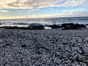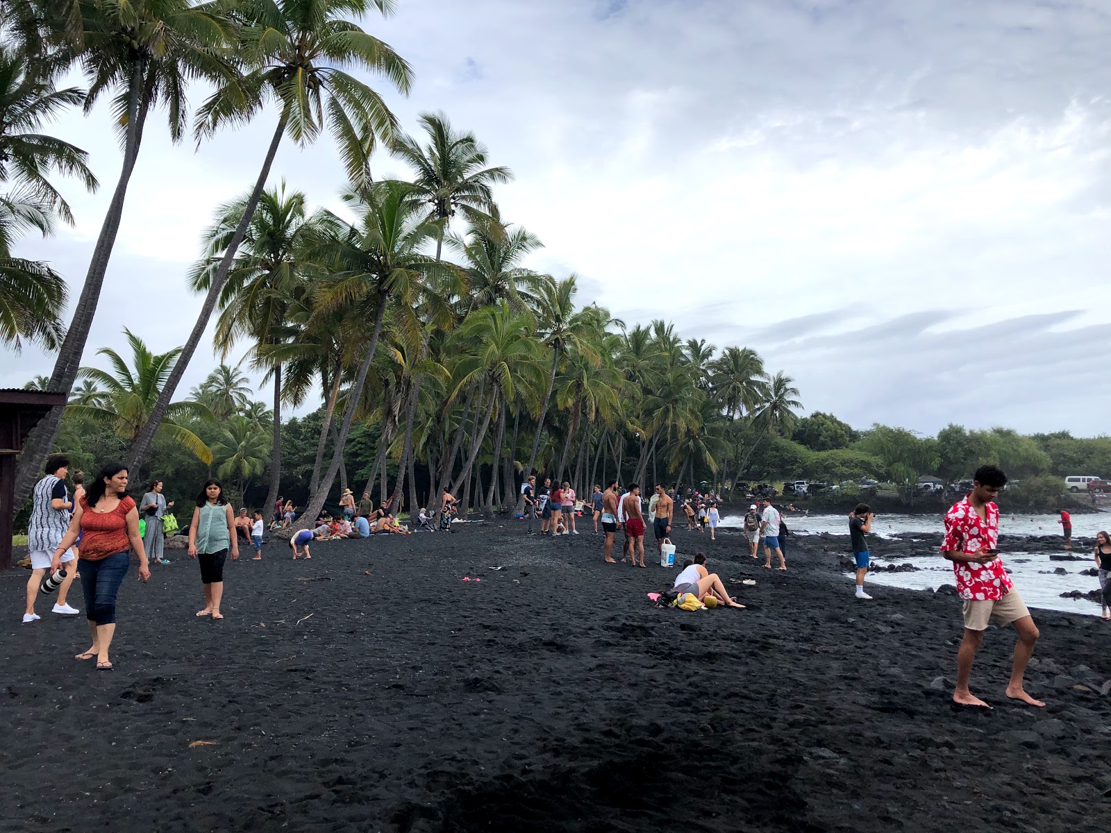 המשכנו דרומה לאורך הים עד החוף השחור Punalu’u Black Sand Beach. הגישה לחוף נוחה, ומכאן גם הפופולאריות שלו. היה די עמוס במבקרים, ולא ראינו צבים בחוף, אז קיצרנו את השהות למינימום, והמשכנו הלאה. מאמינה שביום פחות עמוס, אפשר להנות פה, ואפילו להכנס למים (יש מציל, וצריך נעלי ים).