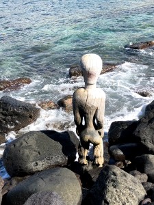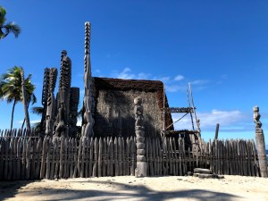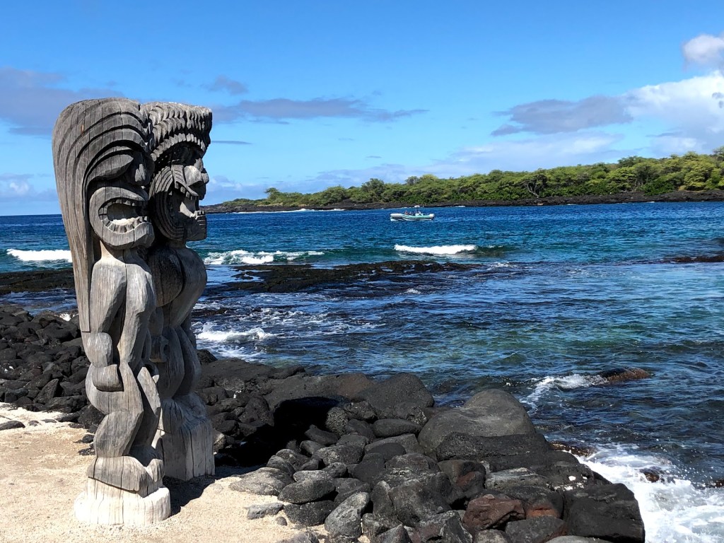 לקראת 10 בבוקר עזבנו את הדירה, ונסענו דרומה, לפארק מורשת Pu'uhonua O Honaunau National Historical Park – הפארק עם הפסלים. מדובר באתר היסטורי עם משמעות דתית פולחנית, עיר מקלט בה יכלו להתחבא אנשים שנאשמו בעבירה על חוקים שדינם מוות, וכך להציל את עצמם, ומקום מחבוא למשפחות בזמן מלחמה. יש במקום שיחזור חלקי של האתר, ופסלי עץ מרתקים של דמויות אלים. אפשר לבצע סיור רגלי עצמאי באתר, לפי מספרים שמופיעים ליד מקומות עניין, עם המפה שמקבלים בכניסה. שמענו גם אנשים מאזינים לאפליקציה עם הסברים, אבל לא יודעת מהי.
