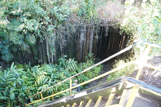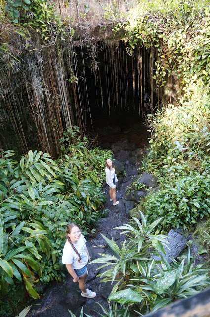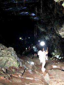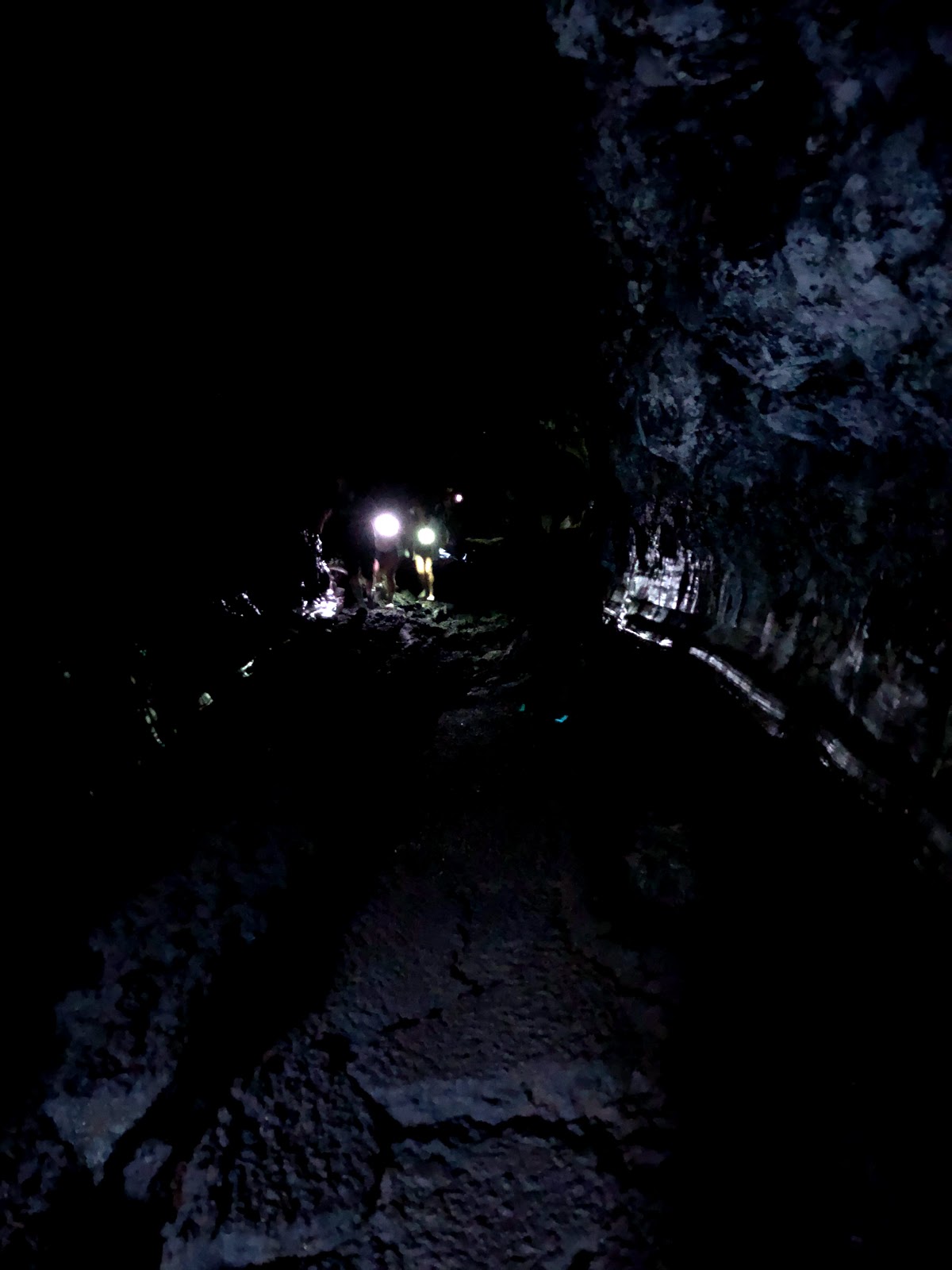 ופתאום, ברגע של הארה, נזכרתי שתכננתי ולא ביקרנו במערת הלבה Kaumana Caves. מערות הלבה Lava Tubes נוצרות כאשר זרם של לבה מתקרר מהר ומתקשה מבחוץ, אבל הלבה שבפנים ממשיכה לזרום. כך נוצר צינור לבה. חנינו במקום המיועד, חצינו את הכביש, ירדנו במדרגות התלולות לתוך המערה, ואז נזכרתי שאת הפנסים שהבאתי במיוחד מהבית… שכחתי בדירה ולא הבאנו איתנו. אז הסתדרנו בזהירות עם הטלפונים, אבל זה לא באמת מספיק. אז תזכרו את הפנסים. החלק הנגיש של המערה לא מאד עמוק, וזו חוויה מעניינת בהחלט.