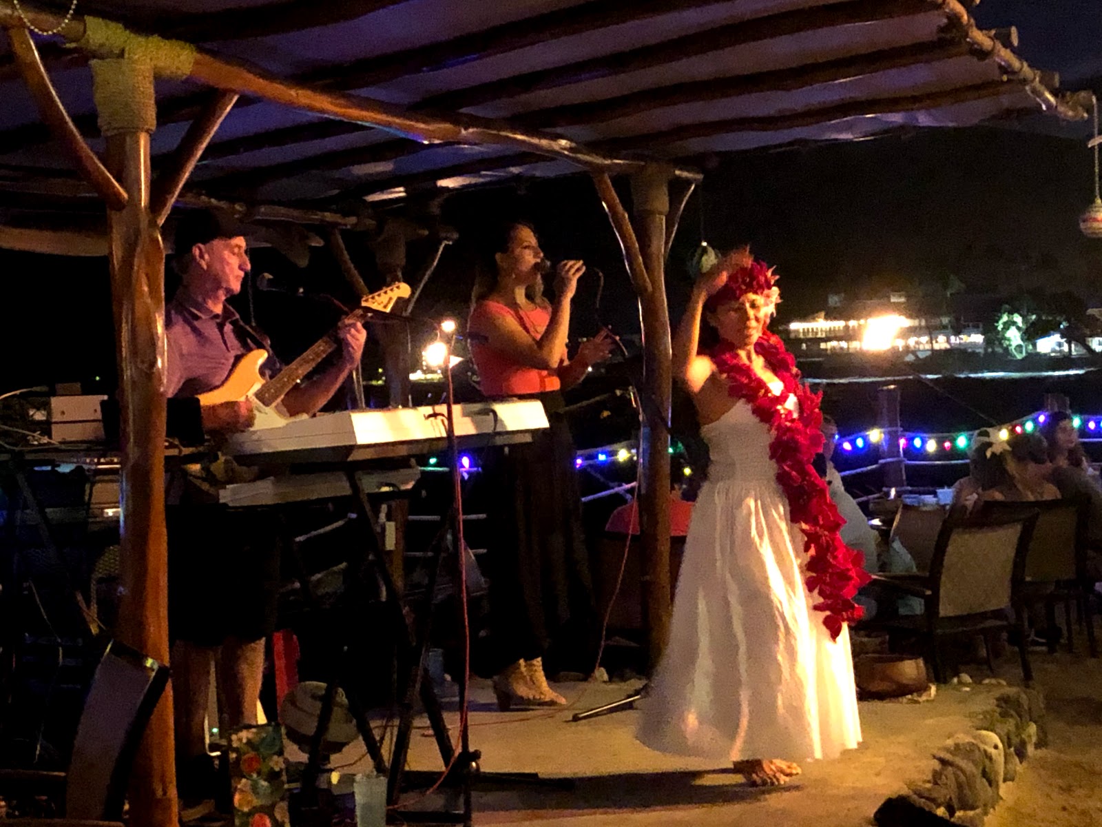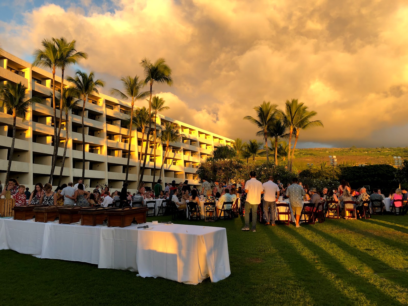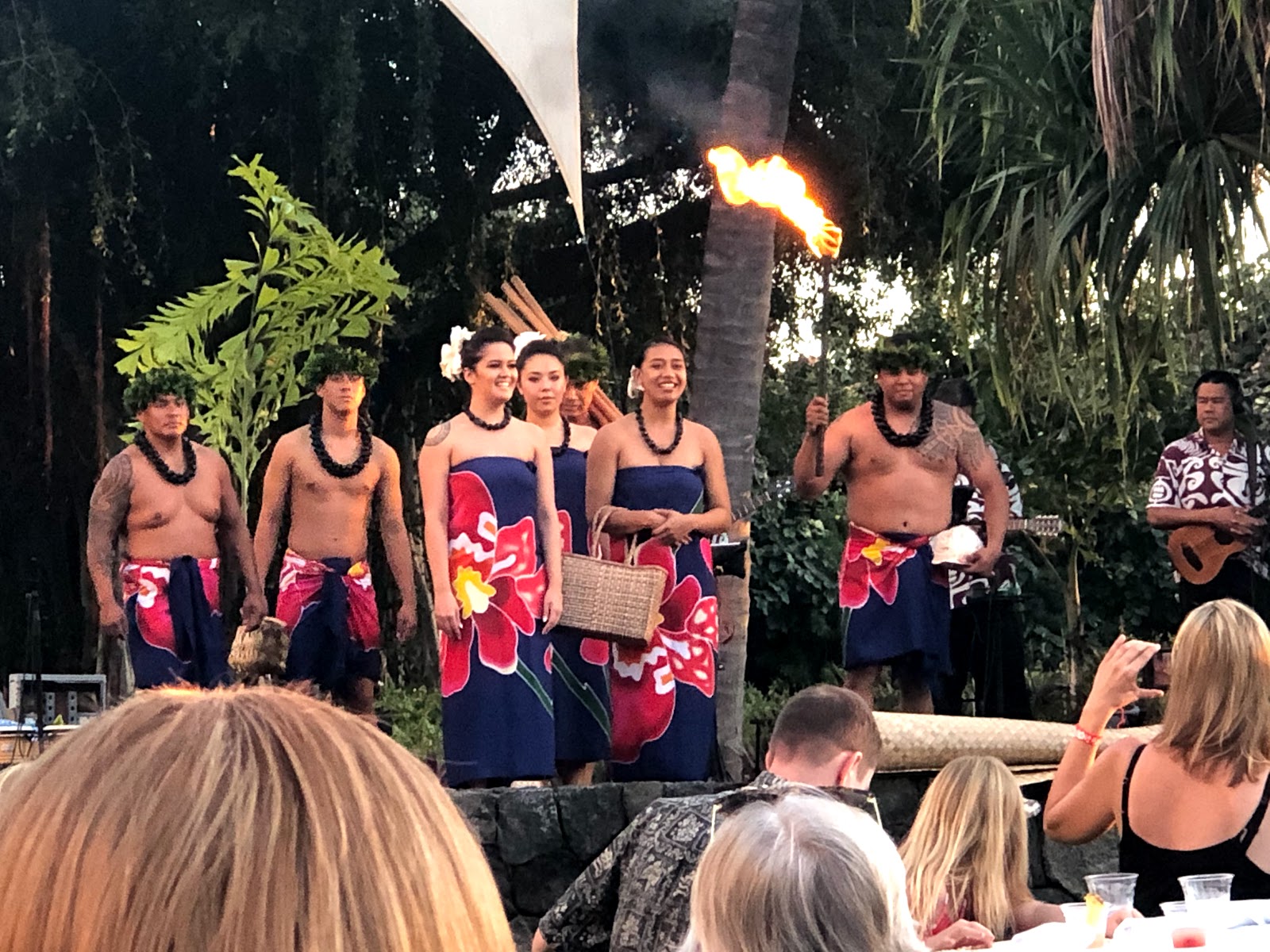 אחרי השייט חזרנו לדירה למקלחות ומנוחה, וחזרנו לאיזור מפרץ Keauhou לארוחת לואאו ומופע ריקודי איים במלון שרתון Haleo Luau. יש מספר אופציות לואאו באי, בחרנו את זו כי התאימה לנו ביום ובמיקום. היינו בעבר בלואאו במרכז הפולינזי באואהו, כך שהקונספט לא חדש לנו. יש ארוחת בופה, בר משקאות, ומופע של ריקודי איים, כולל הולה ומופע אש. מה לא היה? טקס הוצאת החזיר מהבור בו מבשלים אותו (אם זה חשוב לכם). כל אורח מקבל שרשרת צדפים, אלא אם הוא קנה כרטיס משודרג, ואז הוא מקבל שרשרת פרחים (אם זה חשוב לכם, אפשר גם לרכוש ב$10). היה טעים, מהנה ונעים, עם שקיעה יפה.