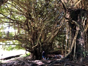 התחלנו את היום ב Rainbow Falls. קראתי שכשיש שמש, בשעות הבוקר אפשר לראות קשת במפל, ואכן כך היה. דקות ספורות של נסיעה מהעיר, חניה נוחה והליכה קצרצרה – אחד המפלים הכי נגישים שיש. את הקשת ראינו כשטיפסנו לחלק העליון של המפל. שם אפשר לראות גם עץ פיקוס (Banyan) ענקי ורב שורשים. מומלץ.