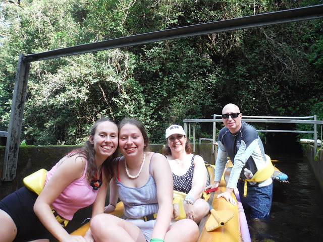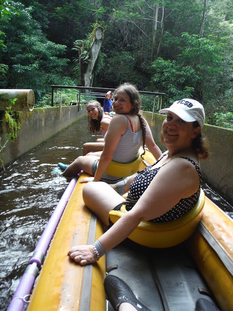הגענו לעיירה הקטנה Hawi ועצרנו לארוחת בראנץ, של בייגלים טעימים בבית הקפה החמוד Kohala Coffee Mill ולאטרקציה המרכזית של היום – שייט בקייאקים בתעלות השקייה עתיקות שנחצבו לפני מעל 100 שנה על ידי פועלים יפנים שהובאו להוואי לעבוד במטעי הסוכר Flumin Kohala. חוויה ממש מיוחדת, רגועה, מתאימה לכולם וכיפית ממש. לבשנו בגדים שאפשר להרטיב ונעלי מים, ראינו סרטון (משעמם מוות), שמענו תדריך ונסענו בוואן לשטח, לאיזור הכניסה לתעלות. עשינו עצירה זריזה בנקודת הנוף היפה Pololu Valley Lookout אליה מומלץ להגיע גם אם אתם לא משייטים בתעלות. המדריכים בקייאקים צעירים מקומיים, חמודים לאללה, גם אם הבדיחות לפעמים קצת קרש. כולנו צויידנו במצופים ליתר בטחון, אם כי התעלות לא עמוקות. איה התנדבה להוביל את הסירה שלנו, ונעם ישב מאחור, מה שאמר שמיקה ואני פשוט ישבנו בסתלבט. השייט עובר ב-10 מינהרות חצובות בסלע, לכן איה ונעם קיבלו פנסי ראש להאיר את הדרך. היתה חוויה ממש מדליקה, ומאד מתאימה למשפחה הבלתי-אקסטרימית שלנו.