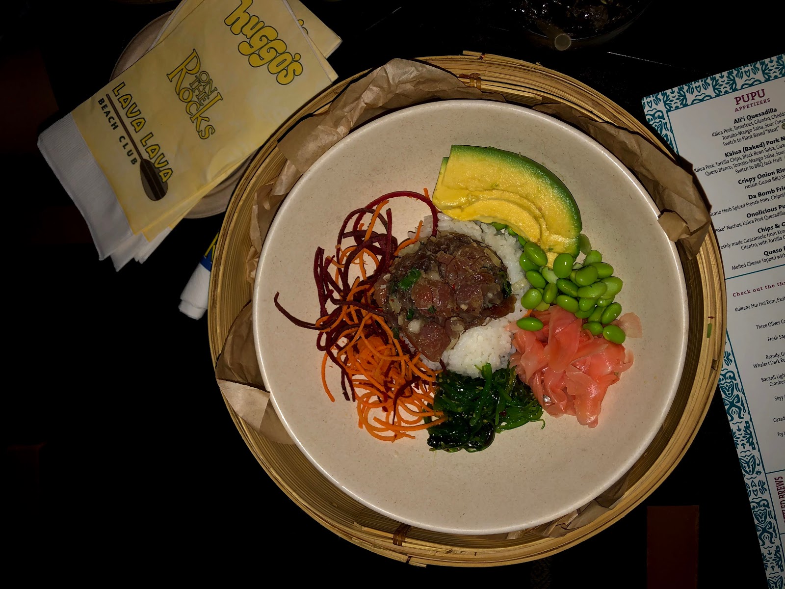 חזרנו לדירה למקלחות ומנוחה, וסיימנו את הערב במסעדה טובה ונעימה Jackie Rey's Ohana Grill. אחרי ההמתנה של הערב הקודם, הזמנו מקומות מראש. אוכל מצויין ומעניין (יש להם סניף גם בקונה). האוכל בהוואי לא זול. ארוחות ערב במסעדות תיירים טובות עלו בממוצע בסביבות $35 לאדם, כשרק אחד מאיתנו שותה איזה קוקטייל, ואנחנו חולקים קינוח אחד. ארוחות צהרים במסעדות פשוטות יותר (בלי אלכוהול וקינוח), כ $15 לאדם (כולל טיפ).