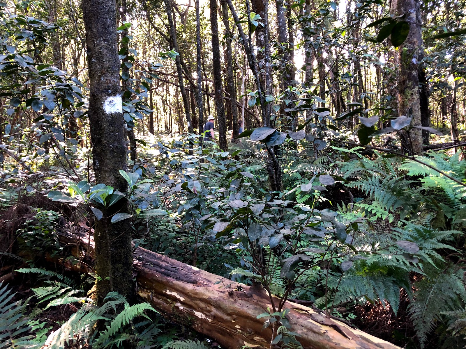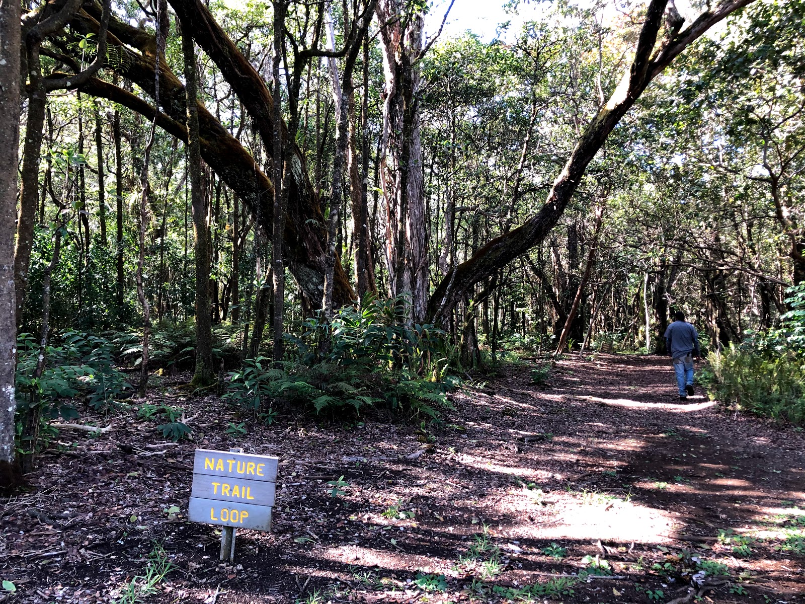 כיוון שאי אפשר כ-ל הזמן רק לשבת, המשכנו לעצירה קלה נוספת בפארק עם מסלול הליכה נחמד בטבע Kalopa State Recreation Area. זהו איזור לקמפינג, אבל יש בו גם מסלול הליכה מעגלי קל Kalopa Nature Trail. לקחנו הסבר על המסלול מלוח המודעות ואיש תחזוקה של המקום הראה לנו איפה מתחיל המסלול. ההליכה לא קשה אם עוקבים אחרי המספרים והפסים הלבנים על העצים, אבל הקרקע לא אחידה ומלאה בשורשים, אז לשים לב. במסלול הזה גם פגשנו במפתיע… זוג ישראלים!