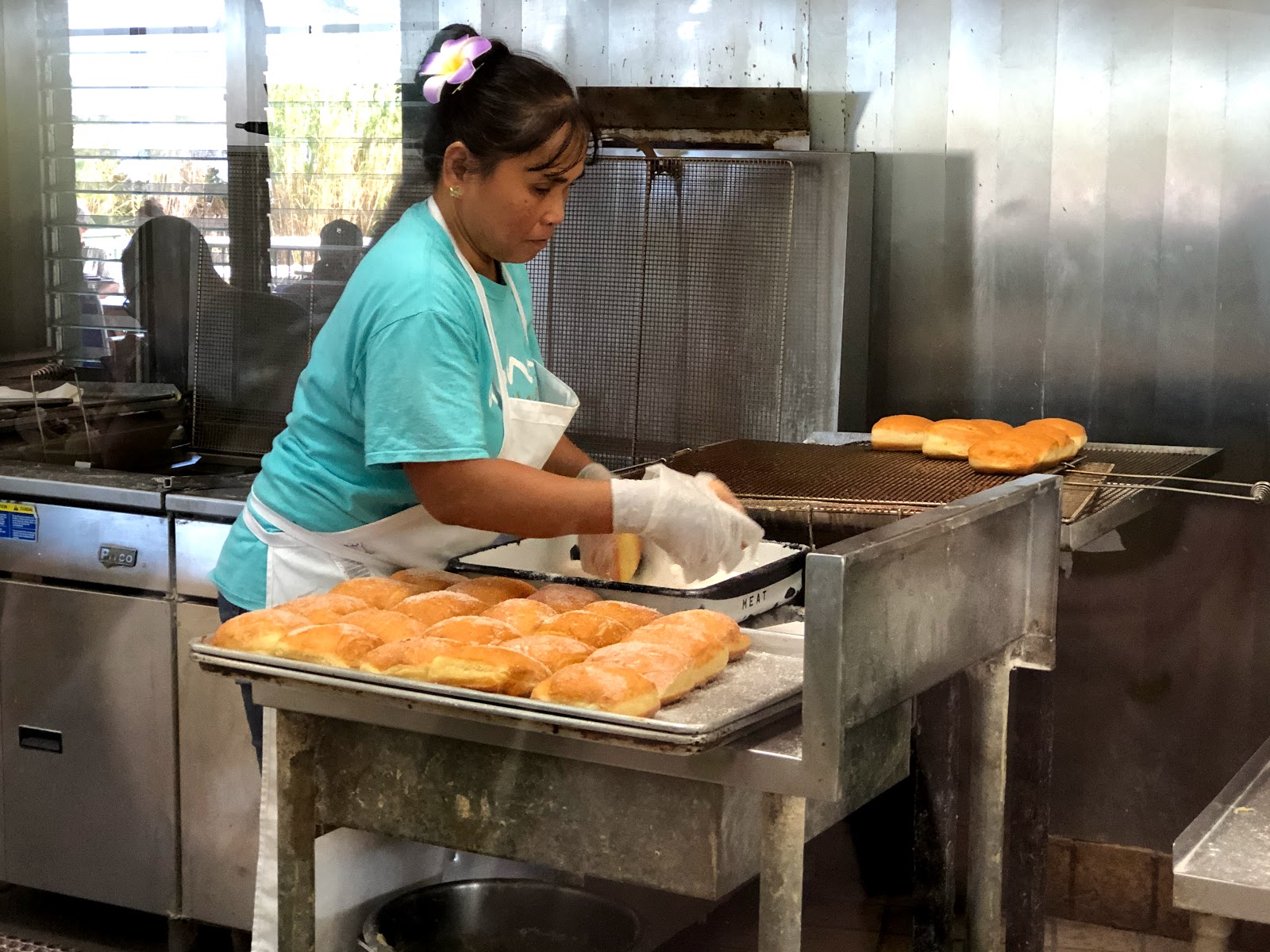 אחרי הסיור היפיפיה, חשנו רעבים, אז נסענו למסעדה שסימנתי לי מראש באיזור – Tex Drive In. האוכל בהגשה עצמית (מזמינים בדלפק ולוקחים לבד) היה בינוני למדי, אבל השוס, והסיבה בגללה הגענו למסעדה הזו בחג החנוכה, הן הסופגניות המקומיות Malasadas. חוץ מזה שהן מרובעות ומצופות בסוכר רגיל ולא אבקת סוכר, הן ממש ממש דומות לסופגניה שלנו וטעימות אש. לקחנו מגוון טעמי מילוי – קרם וניל, שוקולד, תות, קוקוס, והכל היה תענוג.