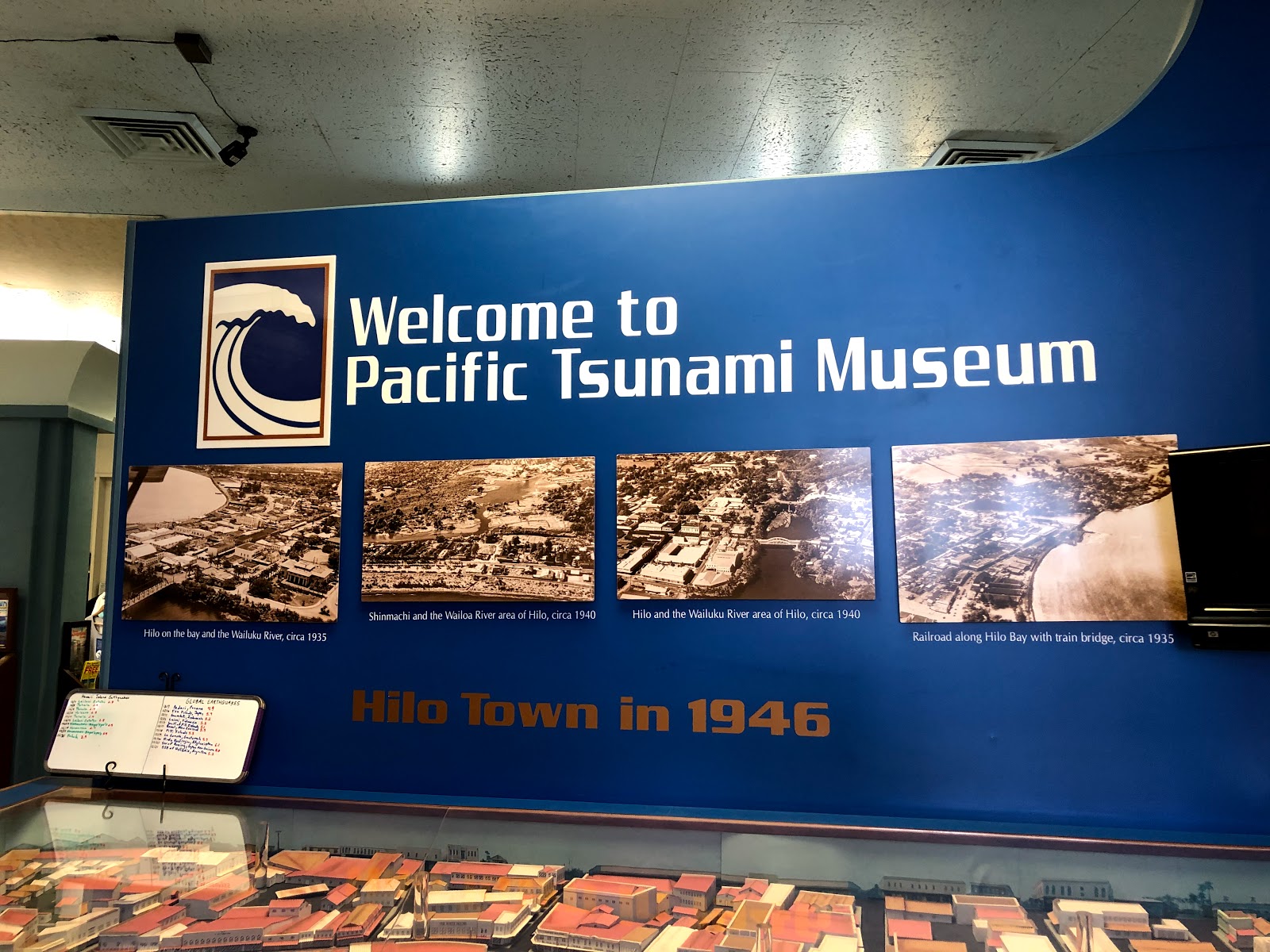 בשביל קצת היסטוריה, וגם כי ירד גשם בשלב הזה (הגשם כל הזמן מופיע ונעלם בהילו), נכנסו למוזיאון קטן אך משמעותי – מוזיאון הצונאמי Tsunami Museum. איי הוואי חטפו לא מעט מכות צונאמי לאורך השנים. המיקום שלהם בדיוק באמצע הים מביא אל האיים גלי צונאמי שנובעים מרעידות אדמה מרוסיה, אלסקה, קליפורניה, צ'ילה, וכמובן גם רעידות אדמה מקומיות. אירועי צונאמי החריבו את הילו לא פעם, והיום יש ערנות גדולה לנושא. המוזיאון עוסקה הרבה בחינוך, מתוך המחשבה שאולי את הצונאמי אי אפשר למנוע, אבל מודעות יכולה להציל חיים. ביקור קצר ומלמד, שנותן קצת פרספקטיבה וגם טיפים להתנהלות.
