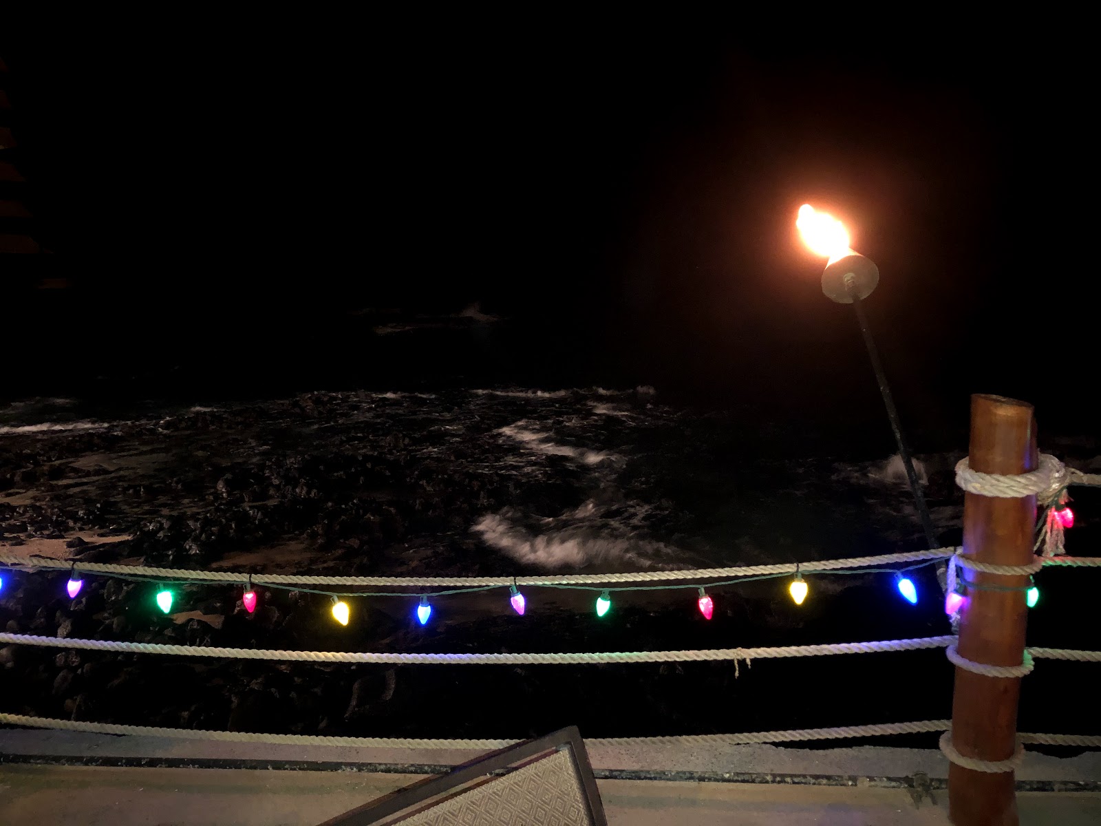 משם המשכנו ישירות עד להגעה לקונה בשעות אחר הצהרים המאוחרות, לדירת ה Airbnb ממש במרכז העיר. גם מציאת מקום לארוחת ערב היה מאתגר ממש. ירדנו ברגל מהדירה לרחוב הראשי של קונה Ali'i Drive עם המון מסעדות וחנויות, אבל כל מקום שניסינו להכנס אליו היה או עם זמני המתנה ארוכים, או fully committed לכל הערב. אבל במקום אחד נחמד בשם On the Rocks אמרה לנו המארחת (הנחמדה), תרשמו את עצמכם, תמשיכו לחפש, וכשיתפנה נשלח לכם סמס. מקסימום תבטלו. אז נרשמנו, המשכנו לחפש, לא מצאנו כלום, וכשהגיע הסמס רצנו בשמחה, וזה היה אחד המקומות הנחמדים ביותר שאכלנו בהם. על החוף, נוף למים, אוכל טעים, קוקטיילים מפנקים, ומוסיקה בלייב. מומלץ בחום.