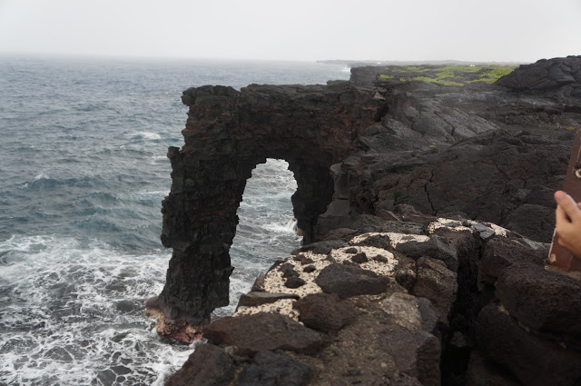 כשנעם ואני ביקרנו בהר הגעש Hawai‘i Volcanoes National Park לפני 20 שנה, היתה בו זרימה פעילה של לבה, המוזיאון היה פתוח, וצינור הלבה הגדול גם. ההתפרצות של 2018 חיסלה את כל אלו, והיום אין בפארק לבה זורמת, גם לא לים. זה עדיין פארק מעניין ומהנה לבקר בו, ואני ממליצה לא לוותר למרות שהאטרקציות מופחתות. עצרנו במרכז המבקרים לקבל מפה והמלצות. נסענו בפארק בסיוע האפליקציה GyPSy שהפכה את הנסיעה להרבה יותר מעניינת. אמנם האפליקציה לא 100% מעודכנת לגבי מה פתוח ומה סגור, אבל ההסברים מעולים. ביקרנו באיזור בו עולים אדים מהאדמה ואפשר לצפות במכתש של הר הגעש, ואז נסענו לאורך שביל המכתשים עד הים, שם ראינו את קשת הסלע המפורסמת. הנופים משתנים בין יערות לשטחי לבה עצומים, חוויה. באיזור החוף תפס אותנו גשם, ודי נרטבנו, כי שכחתי לגמרי שיש לנו בתיק מעילי ניילון חד פעמיים בדיוק למטרה הזו – גשם מפתיע. אז קחו אתכם מעילי ניילון חד פעמיים, כי הגשם יכול להפתיע בכל רגע נתון, אבל תזכרו שהם בתיק ואל תתרטבו כמונו…