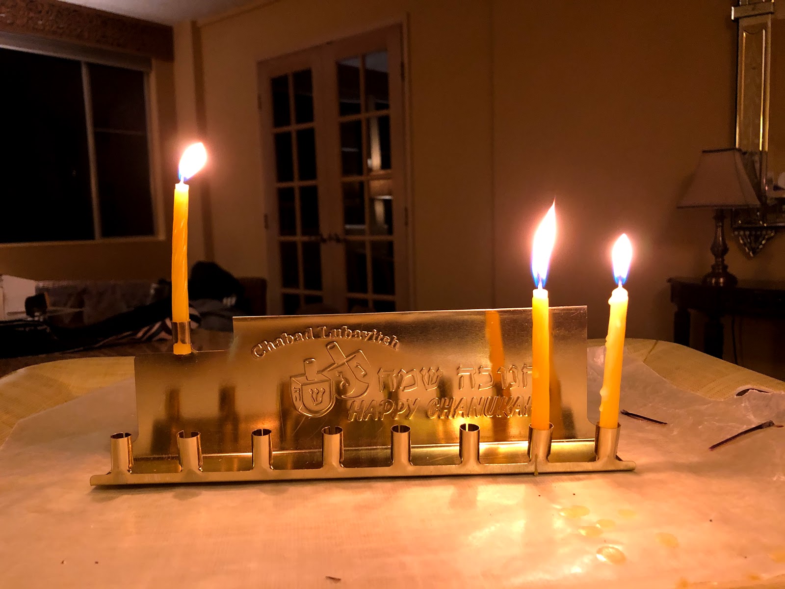 את הערב סיימנו בארוחה בייתית והדלקת נרות חנוכה.