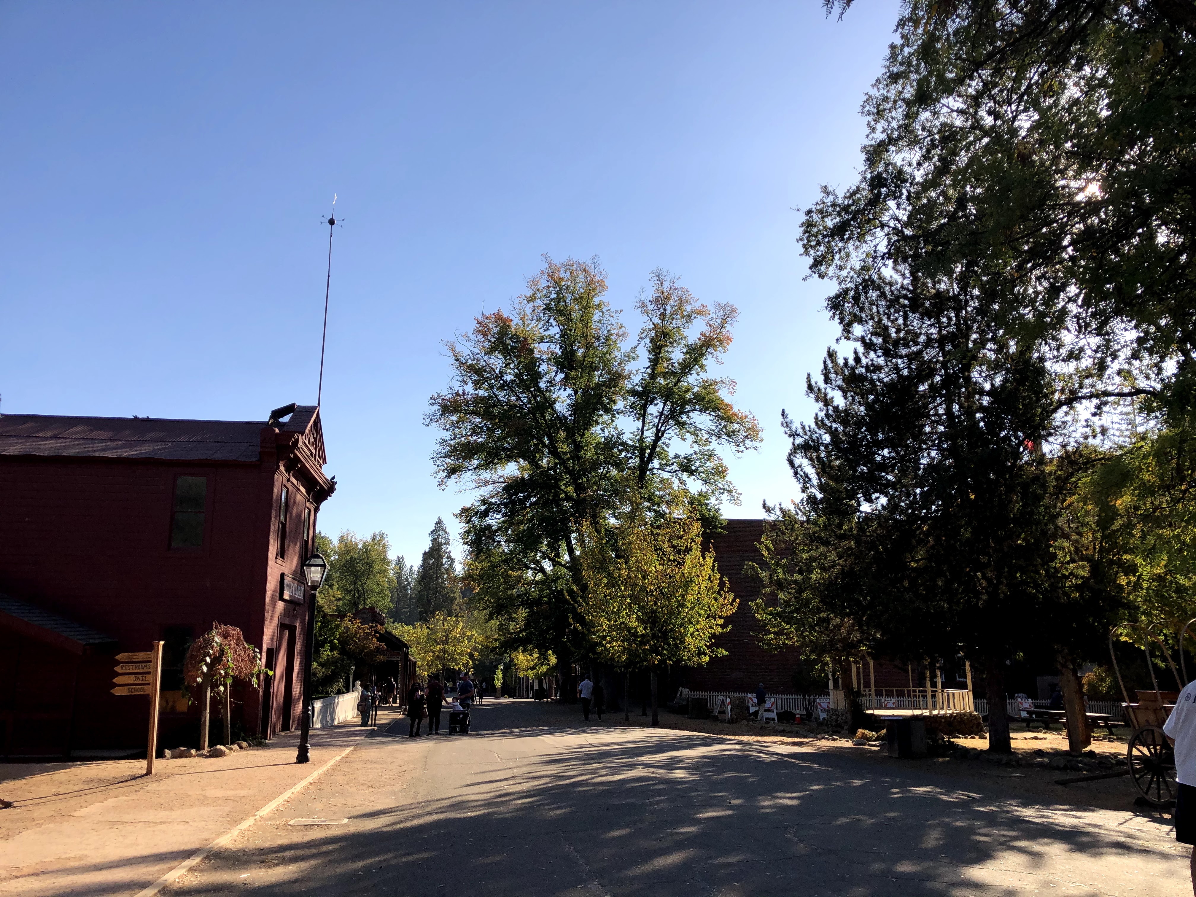 כשכבר לא היינו מעולפים מרעב, עשינו סיבוב קצר בעיירת הכורים המשוחזרת. זהו בעצם פארק מדינה Columbia State Historic Park שהוא רחוב עם חנויות ואתרים שקשורים להיסטוריה של המקום ושל כורי הזהב. יש במקום גם שחקנים מחופשים בלבוש התקופה. הצצנו בבית הכלא הקטן, בנפחייה, בבנק וכמה חנויות. לחנות הממתקים היה תור ארוך, אז שם לא ביקרנו. ראינו עגלה רתומה לסוסים שעושה סיבוב בעיירה, מקום להכנה של נרות מקושטים, והאטרקציה הכי נחמדה לילדים – חיפוש זהב gold panning. מקום חמוד ממש לביקור של כמה שעות עם ילדים סקרנים או מבוגרים חובבי התקופה.