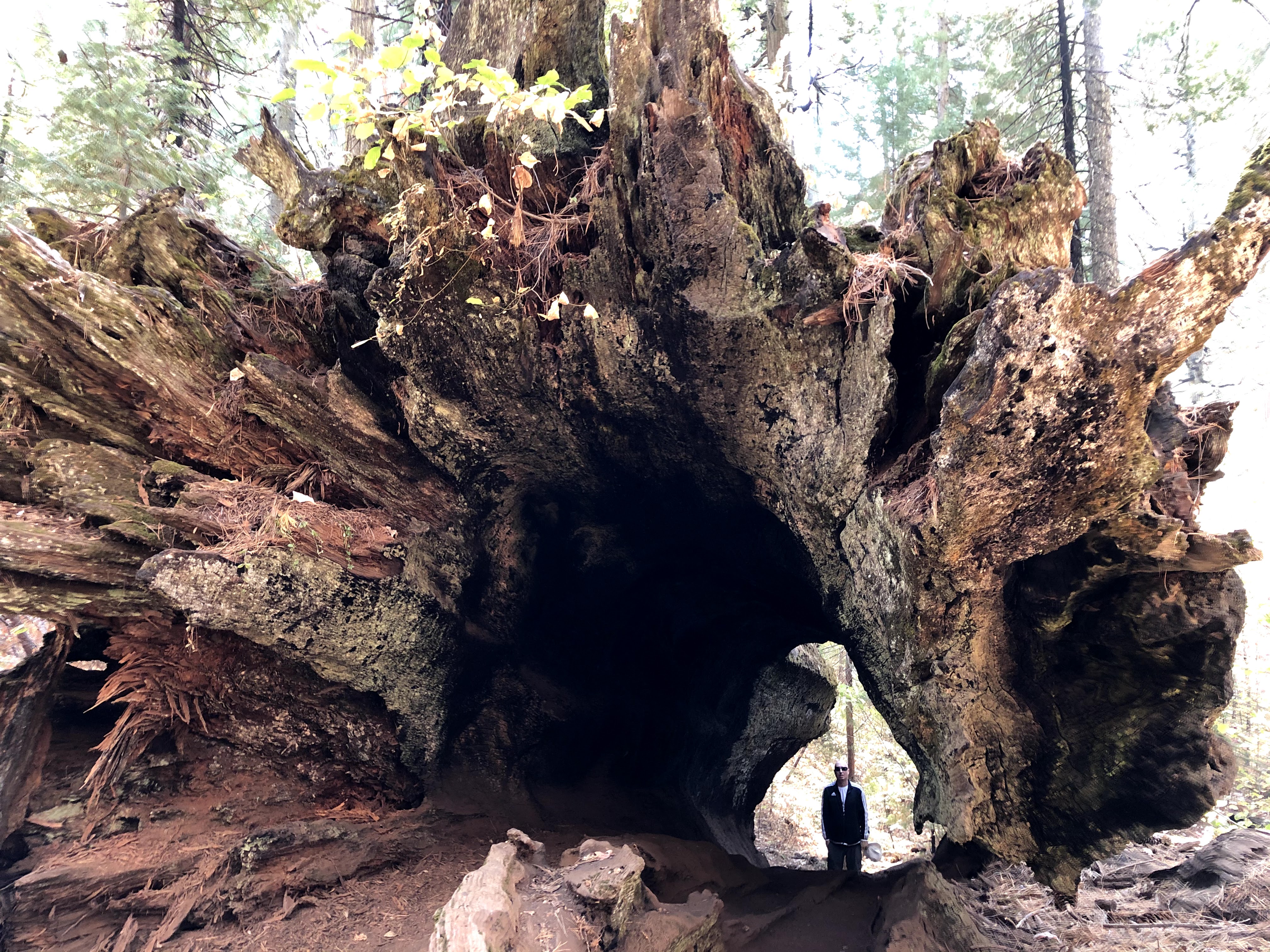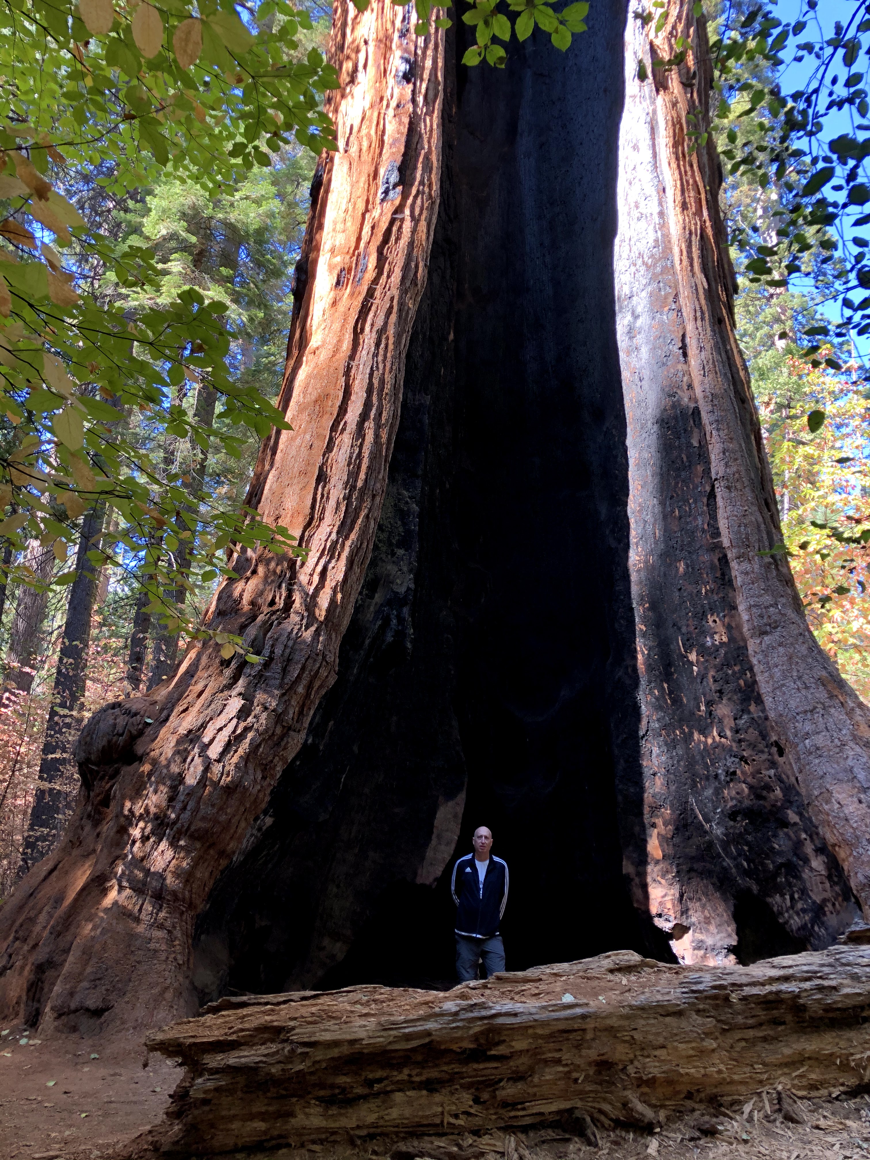 ביום השני נסענו לחבק עצי סקויה Sequoia. למי שלא מכיר – עצי הסקויה גדלים למימדי ענק. גם ברוחב וגם בגובה, והם צומחים רק בכמה נקודות בודדות בקליפורניה בהן יש שילוב מדוייק של אקלים וקרקע. הם זקוקים לשריפות יער כדי להתרבות (האיצטרובלים שלהם נפתחים באש, שבמקביל מכלה את שאר הצמחים המתחרים, והגזע שלהם עמיד לאש באופן מיוחד). יש כמה אתרים ידועים לצפות בסקויה בקליפורניה – פארק סקויה וחורשת מריפוסה ביוסמיטי הם המפורסמים ביותר. המסלול שעשינו נמצא בפארק מדינה (לא פארק לאומי) Calaveras Big Trees State Park.