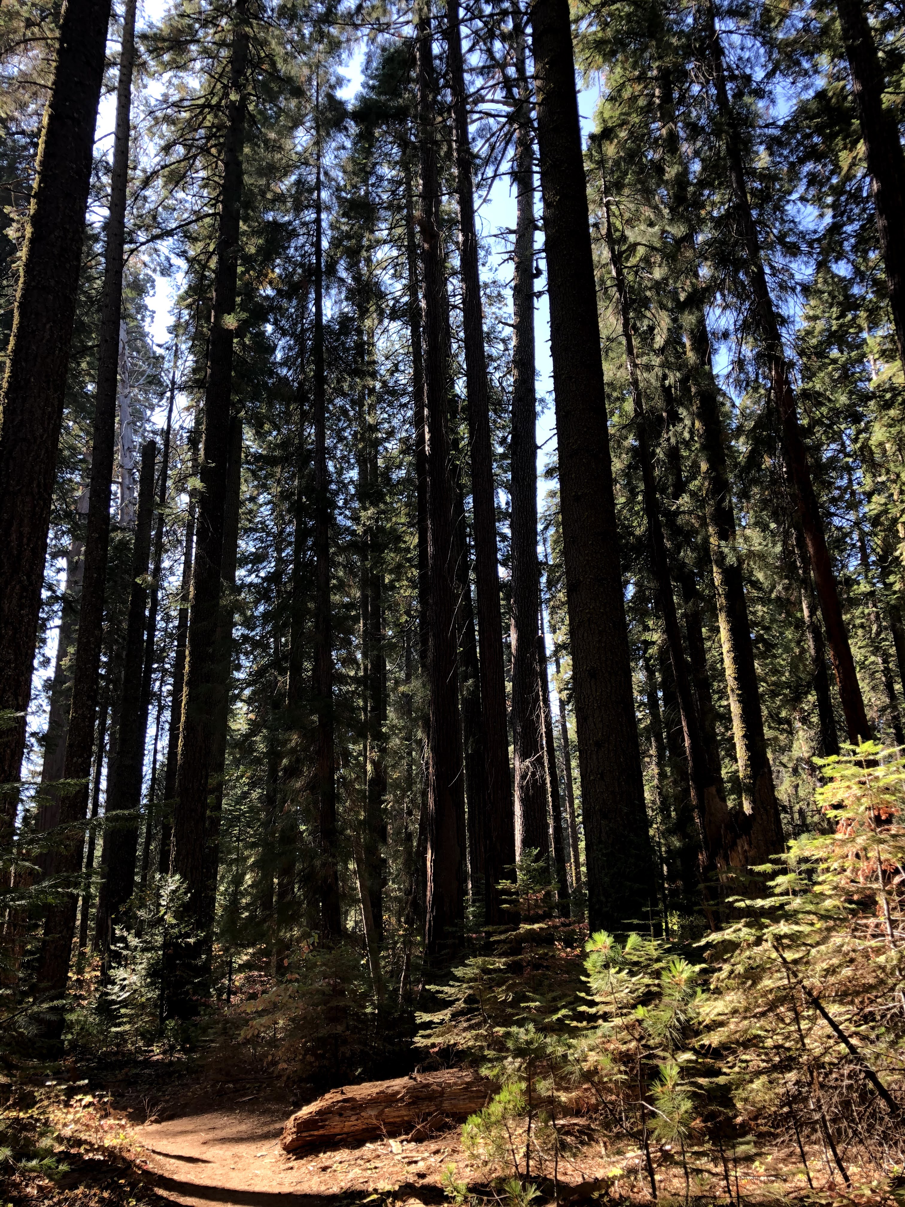 מסלולי ההליכה שביצענו היו בהרי הסיירה עצמם, ביער הלאומי סטניסלאוס Stanislaus National Forest. שממוקם באופן נוח בין יוסמיטי לטאהו, כ-3 שעות נסיעה בלבד מהעמק. כשעולים מעל קו ה-4000 פיט בגובה (אני חושבת) הנופים מתחלפים ליער אלפיני שעיקרו עצי מחט (ולכן אולי לא מצאנו שלכת מדהימה בצד המערבי של הסיירה), ואם מחפשים טוב אפשר למצוא גם עצי סקויה ענקיים ומרגשים בתפאורה טבעית של יער ולא של מסלול תיירים מגודר ומשולט.