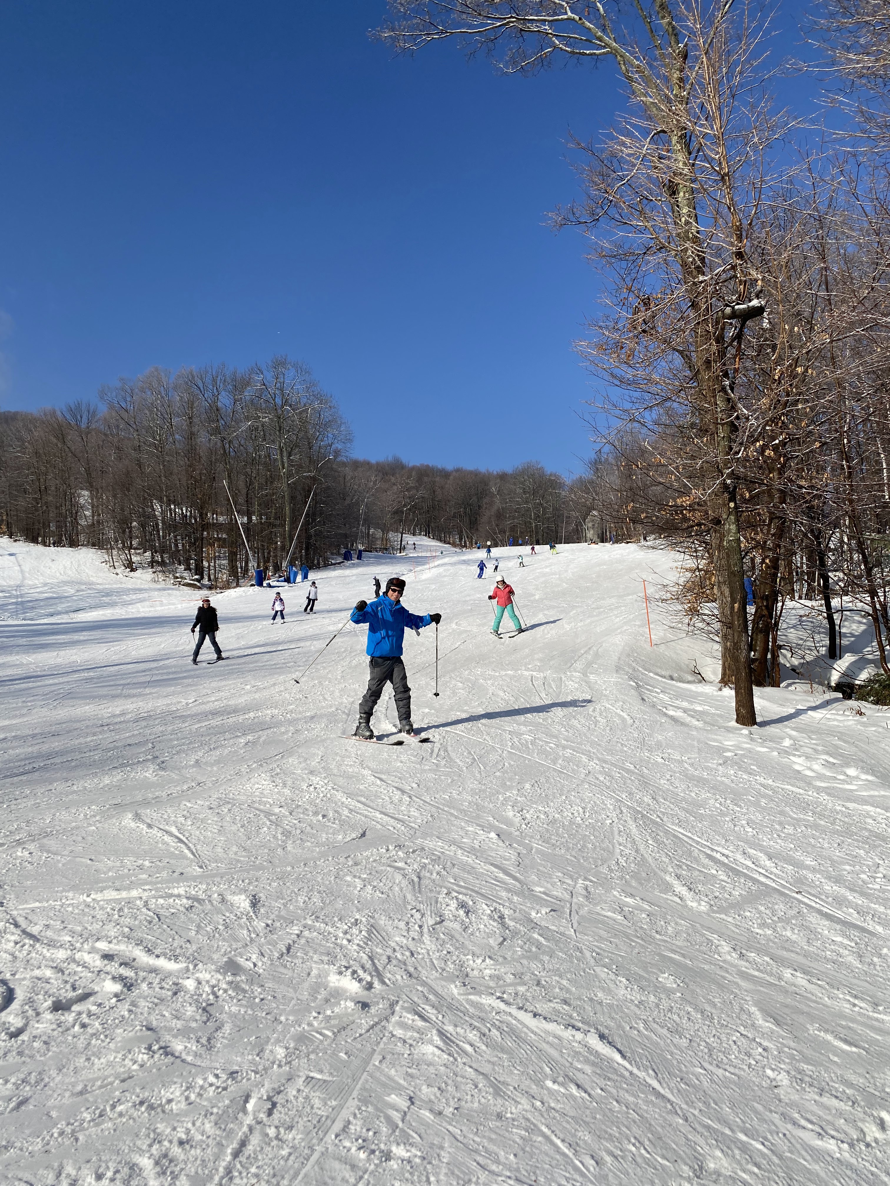 האוכל באתר אמריקאי בסיסי, ושוב אנחנו נזכרים בערגה באוכל באתרי הסקי באוסטריה. המרק היה מוצלח למדי (ולא מטוגן, שזה בונוס). משהו נחמד שפגשנו בפעם הראשונה והבנו שפופולרי באתרי הסקי במזרח ארה״ב – צריף הוופל – כשמו כן הוא – צריף שמוכרים בו רק וופל מתוק שנמצא באמצע מסלול גלישה. הריח הסוכרי נישא למרחקים ופשוט מחייב אותך לעצור. חמוד לאללה וסוגר פינה של אנרגיה באמצע היום.