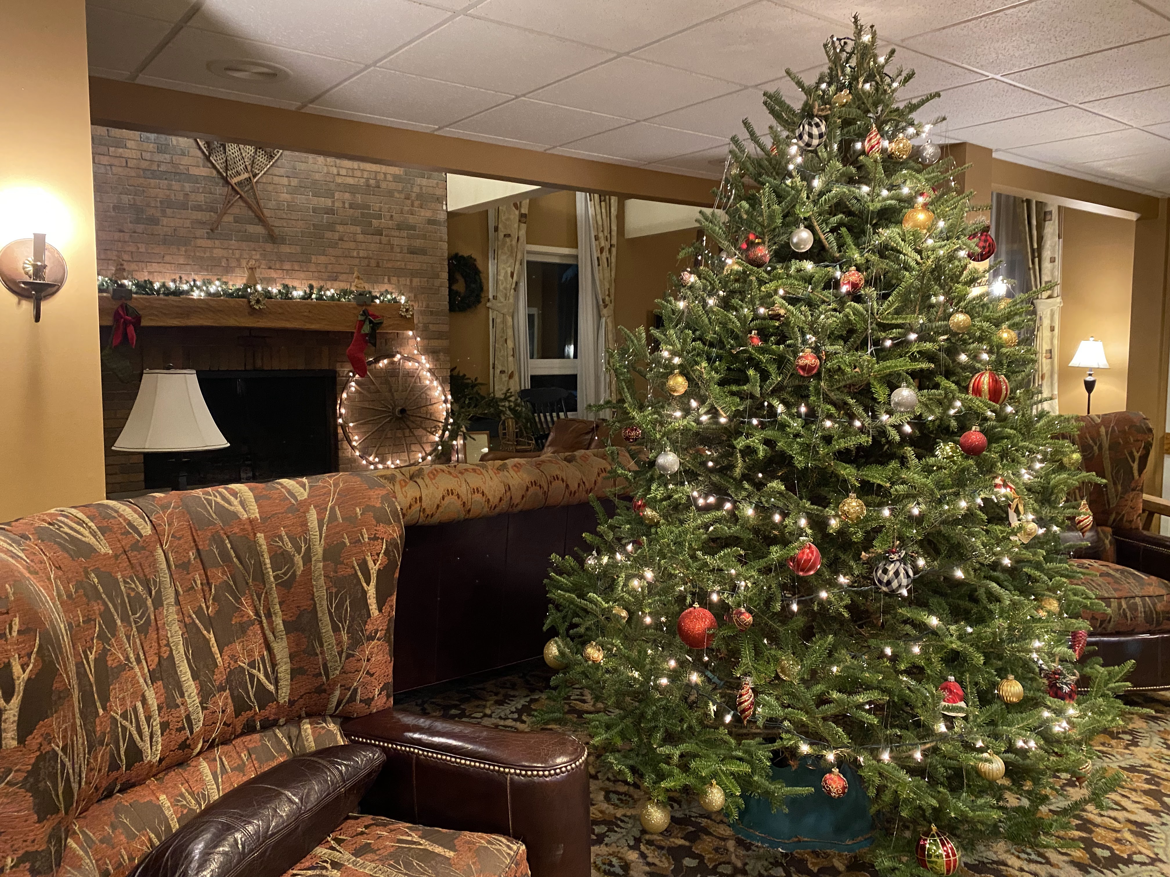 המלון היה שיחוק מאד מוצלח. כעשר דקות נסיעה מהאתר מצאתי לנו מלון שיש לו גם סוויטות שהן ממש דירה – חדר שינה עם מיטת קינג, סלון עם ספה נפתחת ואח על גז, מטבח מלא ומצויד בכל הכלים וגם מדיח, שולחן אוכל גדול ששימש לארוחות ומשחקי ״שם קוד״ ורמיקוב סוערים, וחדר אמבטיה נעים הכולל מכונה ומייבש כביסה. הוא לא מאד חדש או מודרני אבל cozy ומתאים לסביבה והאירוע.