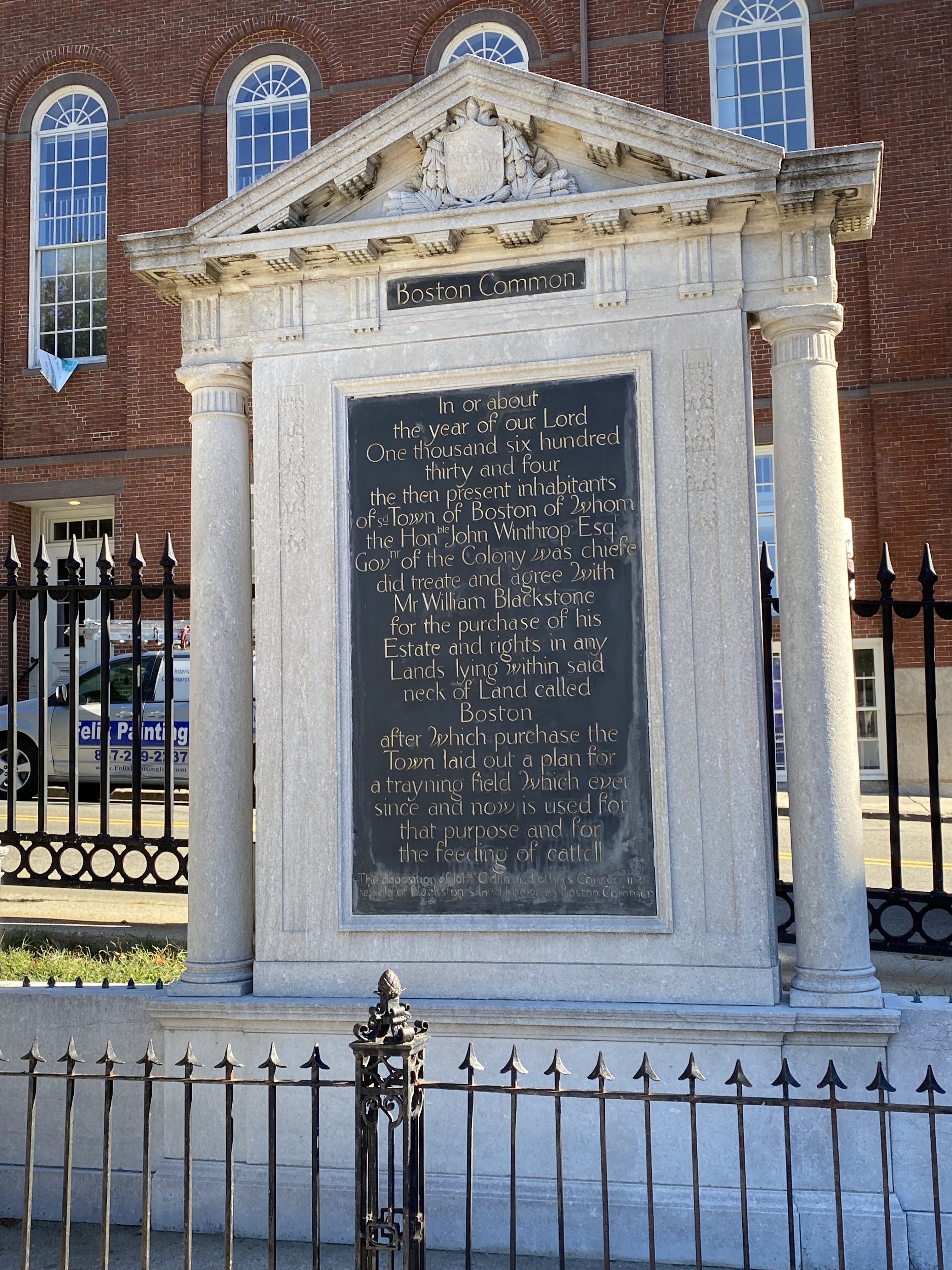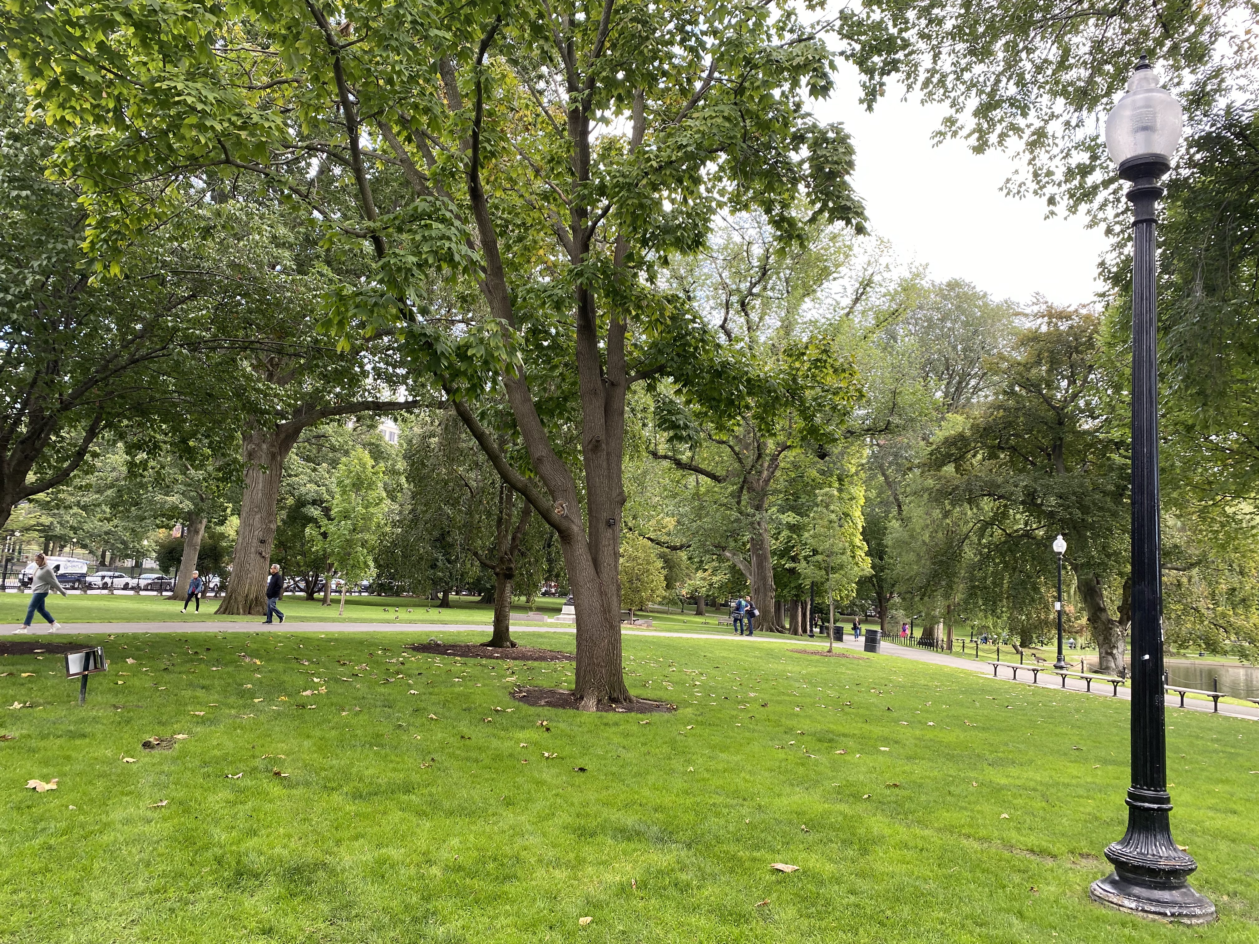 בשלב הזה היינו כבר קצת עייפים, אבל היה עוד קצת זמן אור לנצל. חזרנו ברכבת לתחנת פארק ומשם הלכנו ברגל דרך שני הפארקים הנהדרים של מרכז העיר – הבוסטון קומון Boston Common רחב הידיים ומלא המדשאות, שהוא הפארק הציבורי הראשון שהוקם בארצות הברית, והפארק העירוני Public Garden המושקע והמטופח, שהוא הגן הבוטאני הראשון שהוקם בארצות הברית. יש הרבה "ראשונים" בבוסטון! שניהם ירוקים (בעונה זו של השנה של טיפונת לפני תחילת הסתיו), נעימים לשיטוט, יפים לעין, ומרחיבי לב. המשכנו לאורך רחוב ניוברי Newbury (לא משהו להתרגש ממנו) ועד כיכר קופלי Copley Square על שם הצייר תושב העיר, עם הכנסיה המפוארת Trinity Church. משם לקחנו רכבת בחזרה למלון והתפצלנו לארוחת ערב – איה פגשה חברים ואנחנו הלכנו ברגל לפיצריה מקומית. תם זמננו בבוסטון היפה.