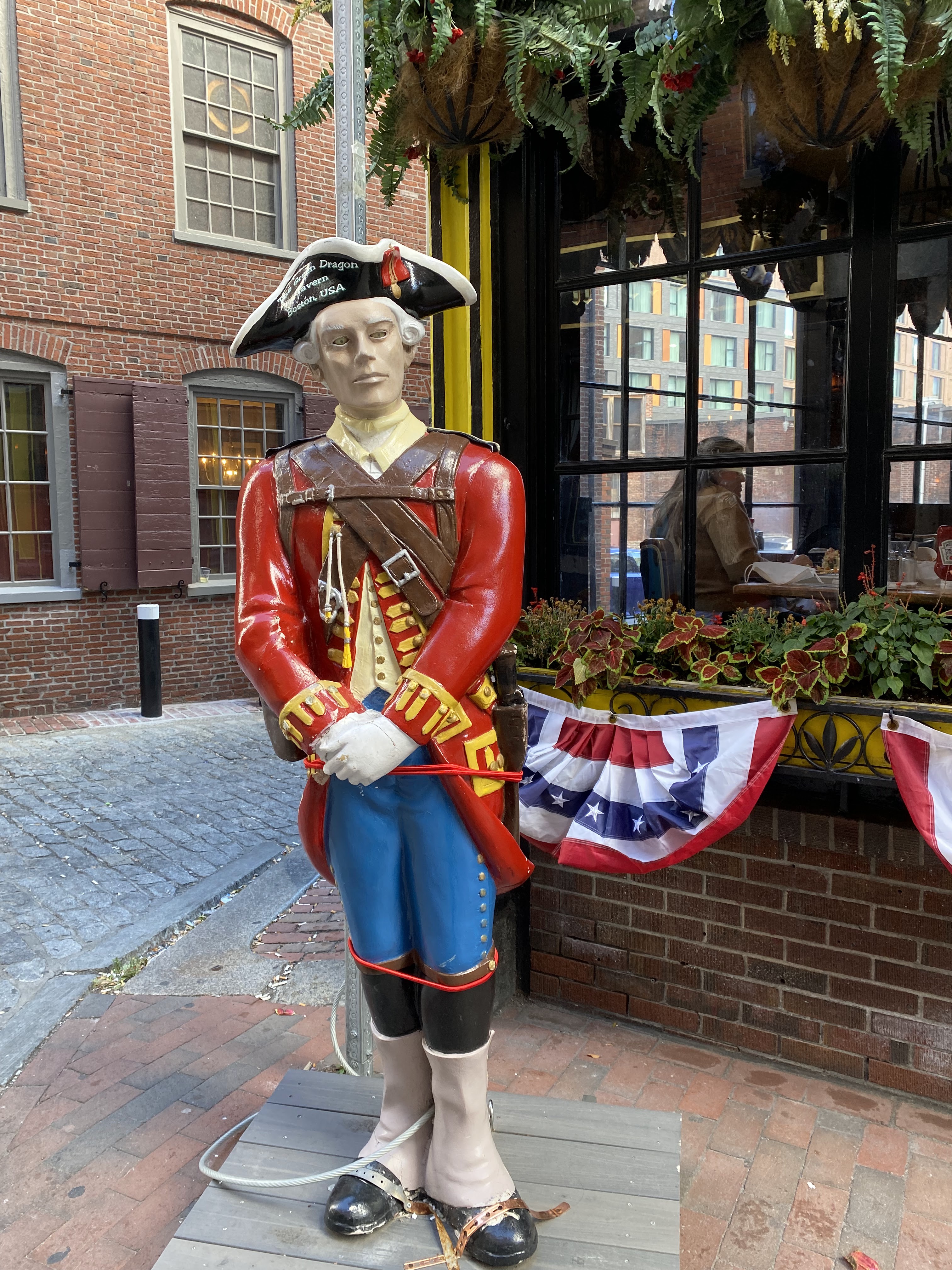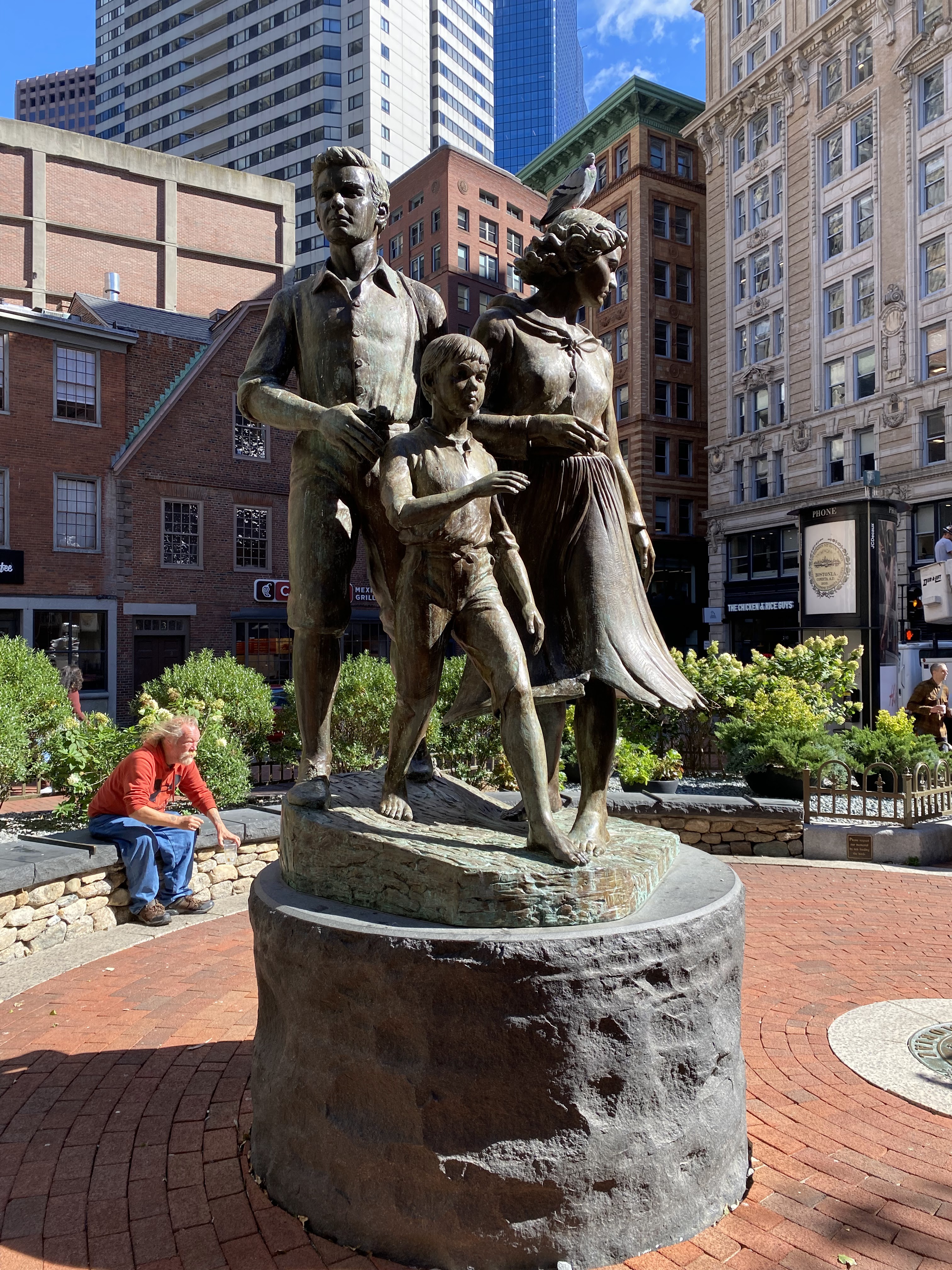 התחלנו את הביקור שלנו בבוסטון בסיור מודרך לאורך חלק מנתיב החירות. אנחנו אוהבים את הסיורים המוצעים על ידי ארגון Free Tours by Foot, שבו אין תשלום קבוע מראש לסיור, וכל משתתתף בוחר האם וכמה לשלם בסוף. יש כמובן המון סיורים אחרים בעיר, וזו רק אופציה אחת. הסיור התחיל בפאתי הפארק הגדול Boston Commons עם תצפית על בניין הממשל בעל הכיפה המוזהבת The State House. המסלול לקח אותנו דרך בית הקברות Granary Burying Ground (שימו לב לסימונים על קברים של פטריוטים שקשורים לעצמאות ארצות הברית), בית העיריה הישן עם החמור הדמוקרטי Old City Hall, בית הממשל הישן, מקום התרחשותו של הטבח של בוסטון Boston Massacre בו נרצחו חמישה אזרחים חפים מפשע על ידי חיילים בריטיים, ונחשב אחת מנקודות הציון החשובות בהתקוממות, ועד בית פנויל Faneuil Hall והחרגול המקשט את שבשבת הרוח על גגו. קשה להאמין שבעת הקמתו, בית פנויל היה בית מכס על קו המים! הסיור היה מצויין, מעניין ושופע מידע היסטורי. הקבוצה היתה קצת גדולה, אבל המדריך נעזר במיקרופון ורמקול כך שאפשר היה לשמוע אותו בקלות. ממליצה מאד.